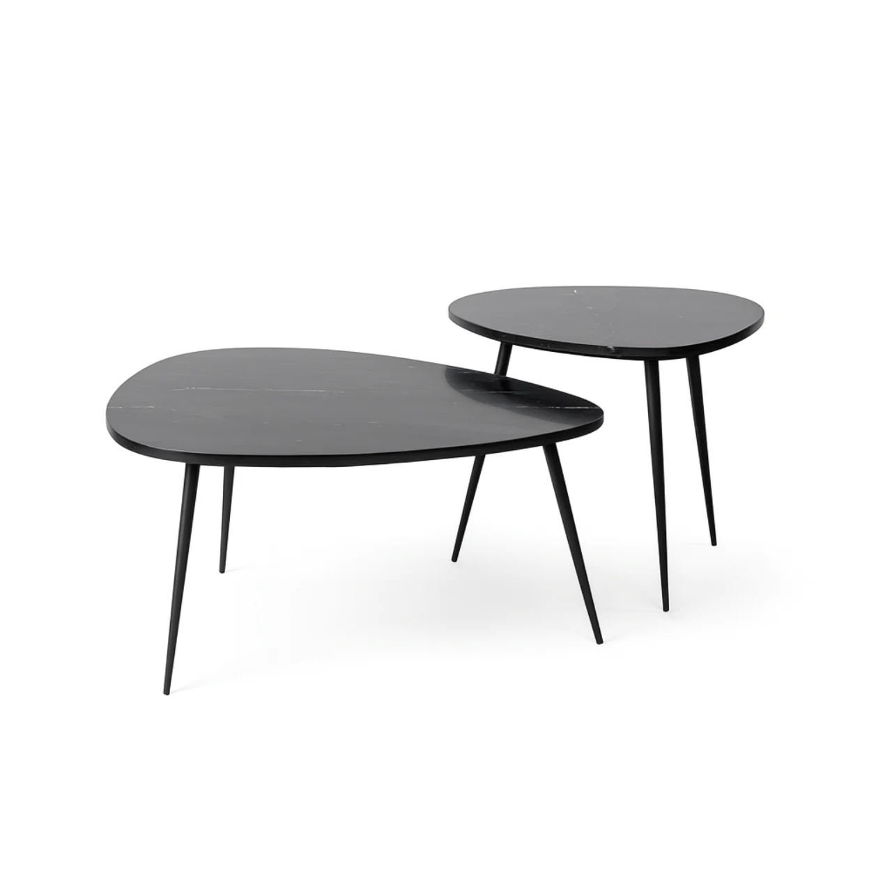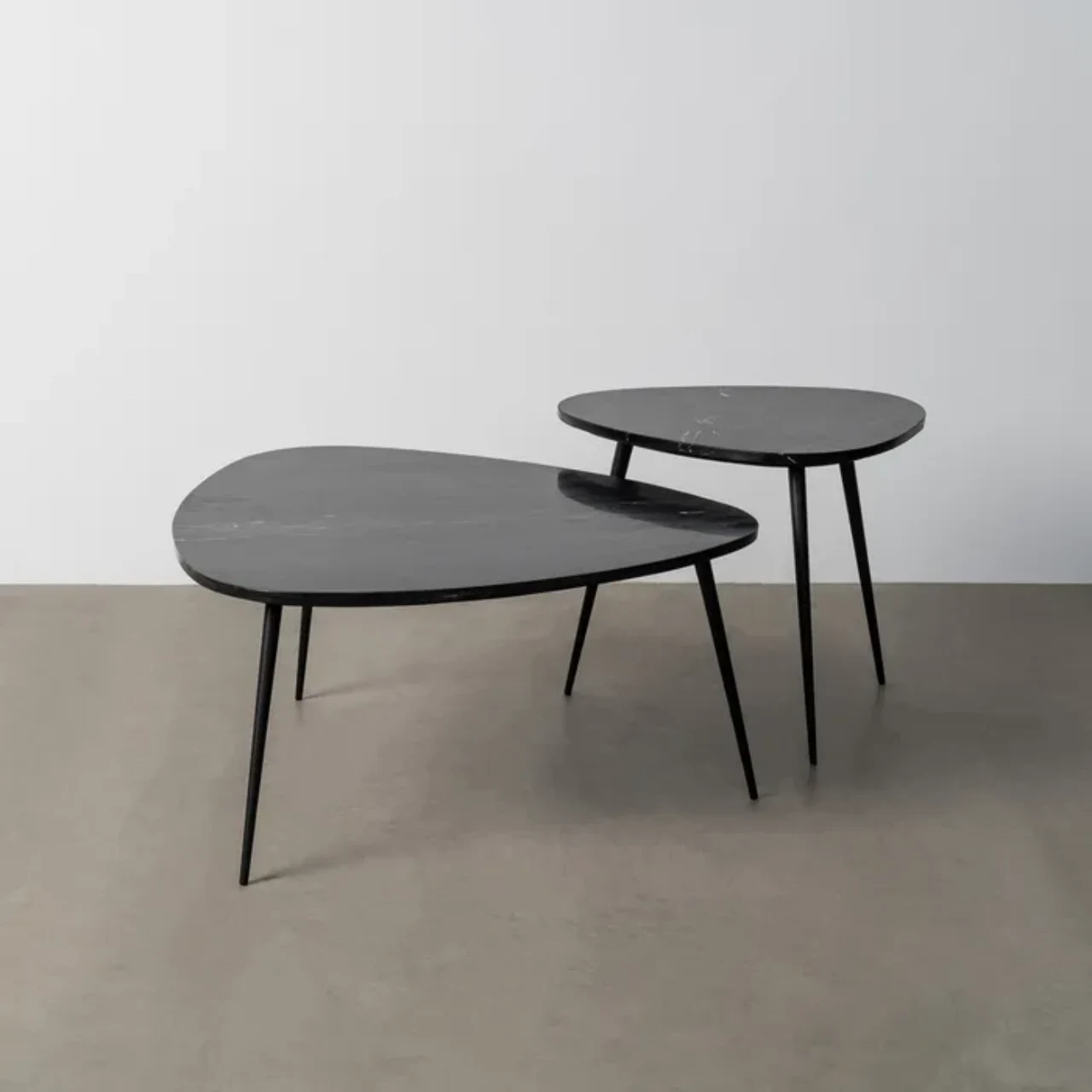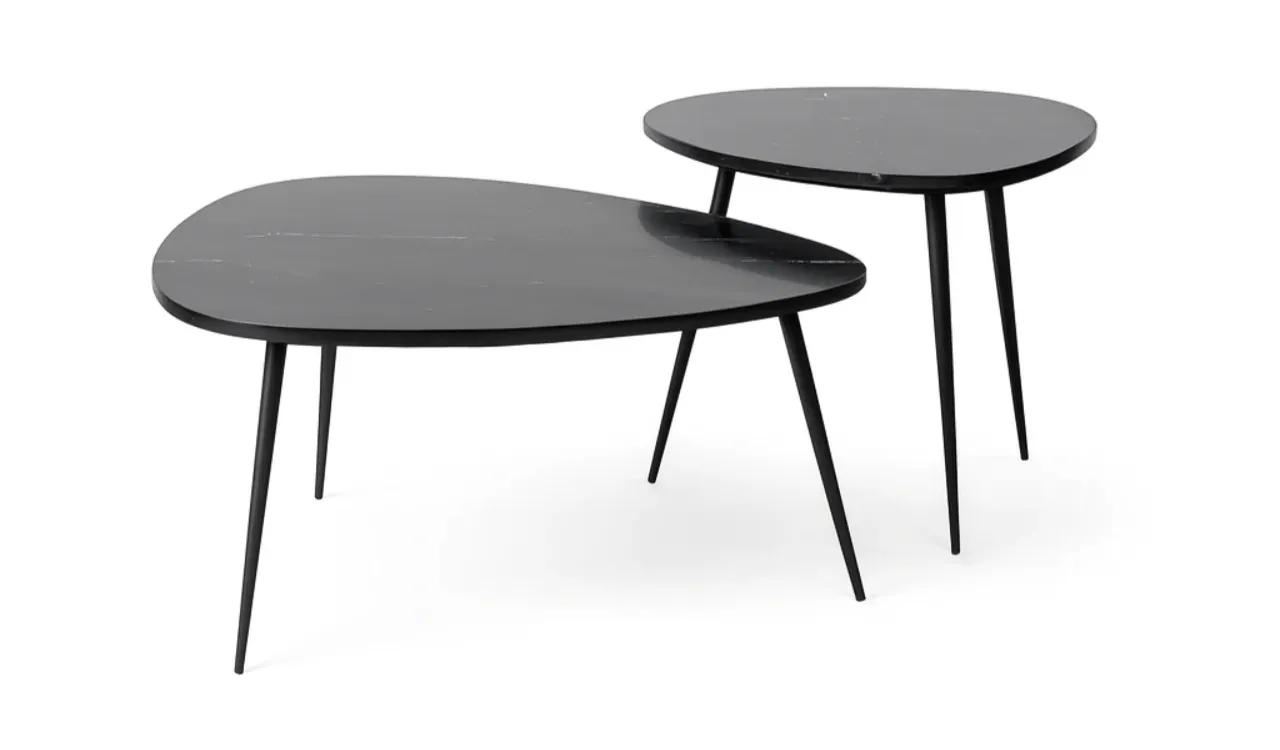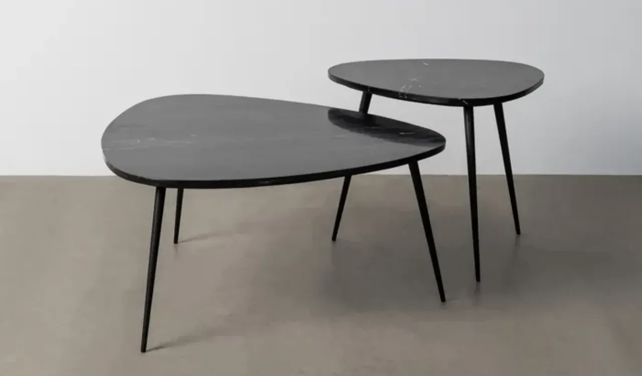 Aporta elegancia y carácter a tu salón con este set de 2 mesas de centro en mármol negro y estructura de hierro, una combinación que destaca por su resistencia y estilo contemporáneo.