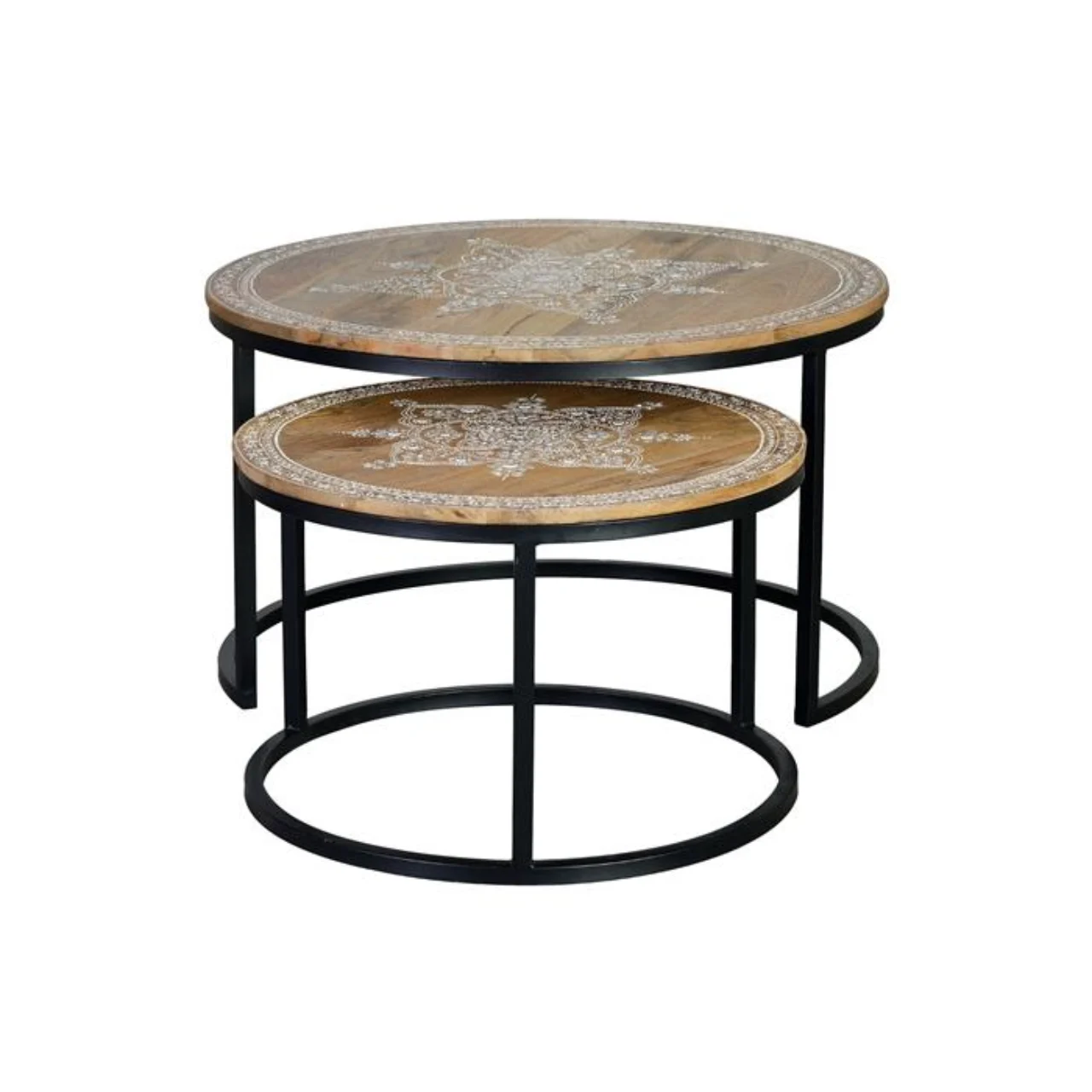 Sumérgete en la belleza rústica de nuestro Set de 2 Mesas Nido, cuyo diseño único agrega un toque de modernidad a cualquier hogar. Fabricados con madera resistente de Mango y estructura sólida de Hierro, estas mesas son tanto estéticas como duraderas. Siguiendo la sencillez, los Detalles en Blanco pintados a mano realzan la textura y las vetas de la madera natural, lo que garantiza que cada pieza sea única en todos los aspectos.