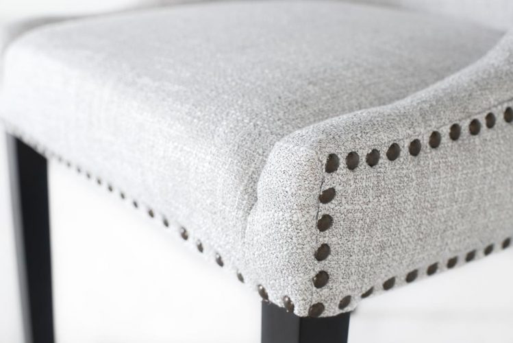 Descubre la elegancia en cada detalle con este set de 2 sillas tapizadas. Su tejido de color gris claro y las patas de madera de tono negro aportan un toque sofisticado a cualquier ambiente. Equipadas con tacos, estas sillas aseguran también una total protección para tu suelo evitando ralladuras.