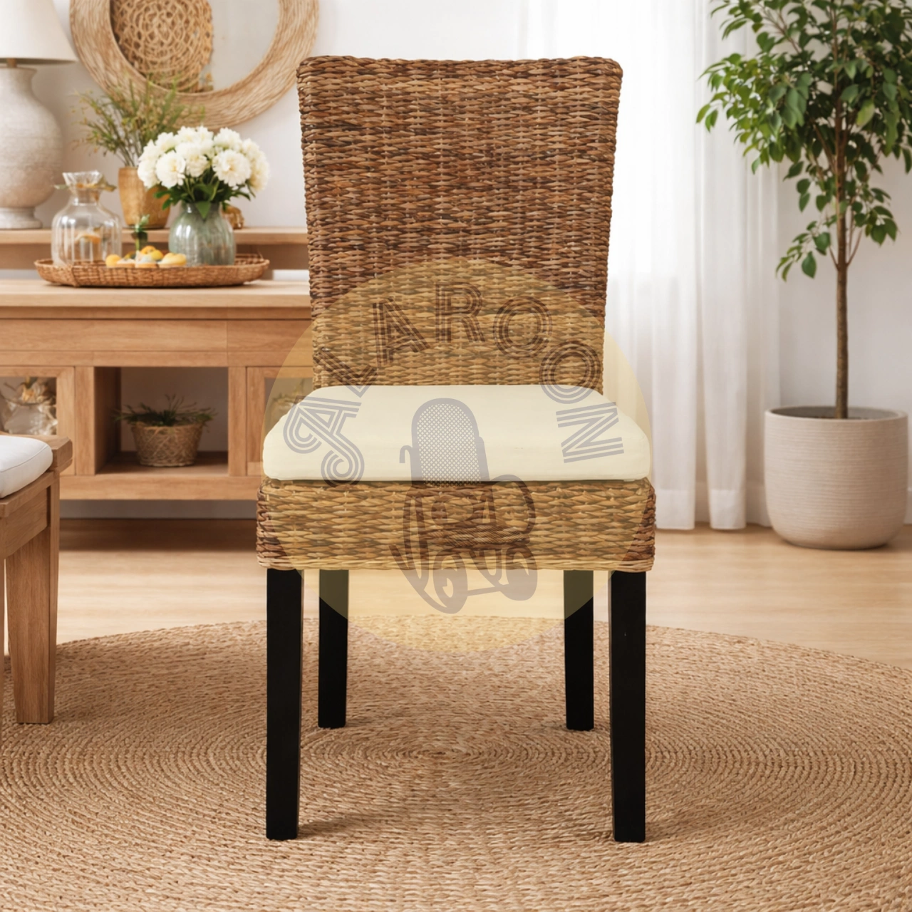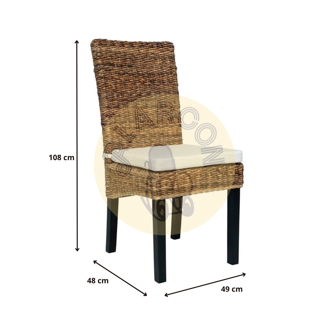 Aporta carácter a tu comedor con este set de 2 sillas coloniales fabricadas en ratán y fibra de banana, una combinación natural que destaca por su diseño elegante y su estética cálida. Su estructura envuelve el espacio con un estilo atemporal ideal para ambientes acogedores.