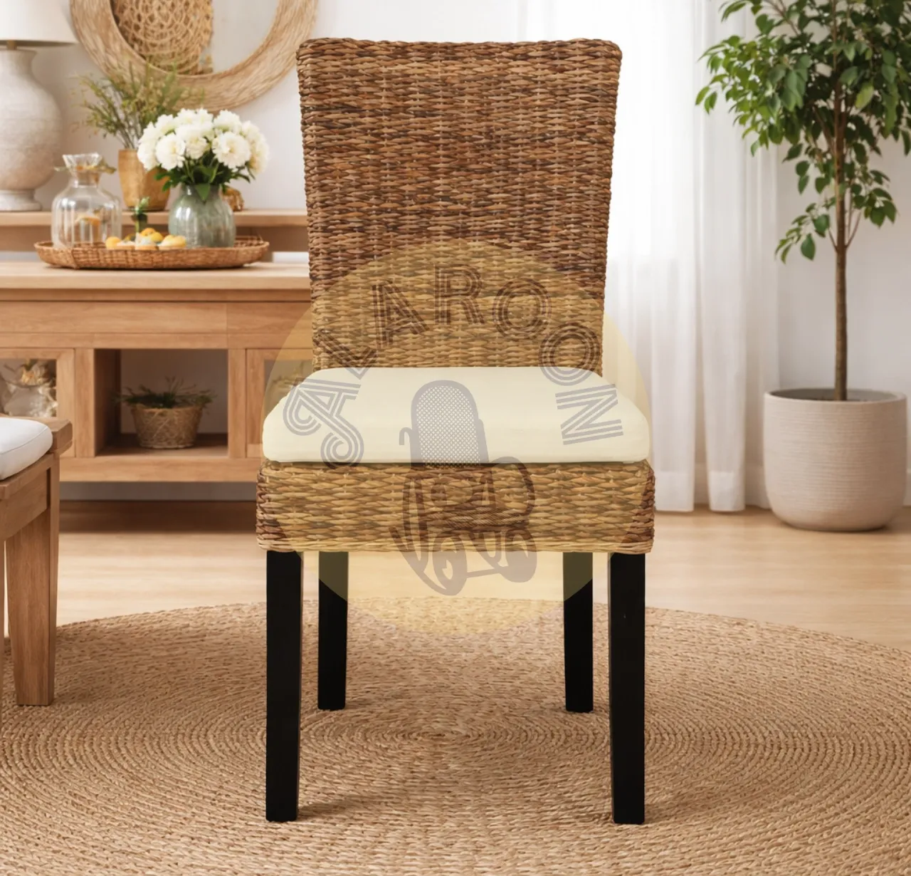 Cada pieza incorpora un cojín incluido que mejora la comodidad en el uso diario, manteniendo una imagen limpia y armoniosa. Su acabado artesanal resalta la textura del material, aportando un toque auténtico y diferenciador a cualquier estancia.