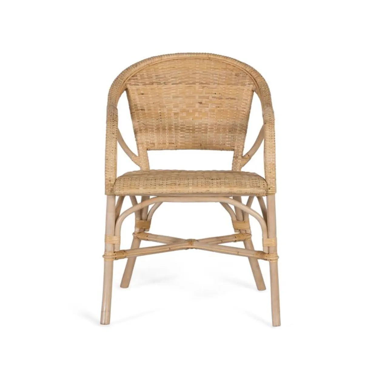 Su estructura de cañas curvadas ofrece resistencia, ligereza y una estética única, mientras que el trenzado uniforme del asiento y respaldo añade textura y comodidad en cada pieza.