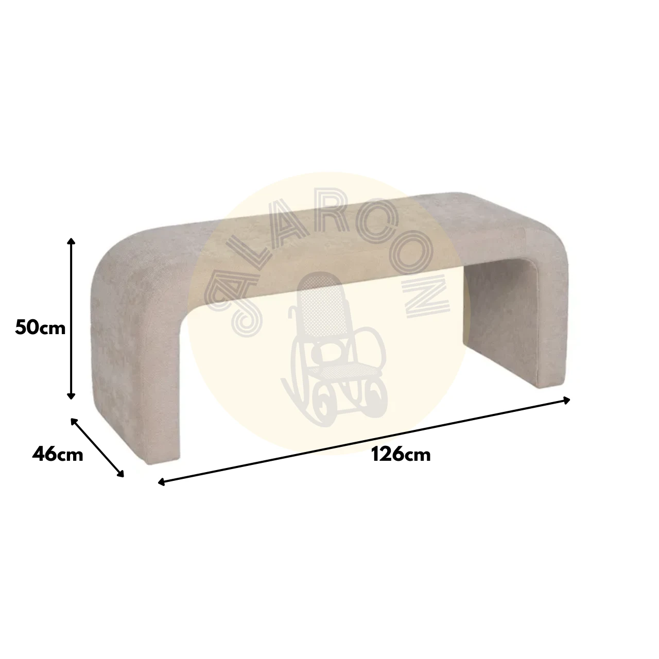 El banco principal mide 126 x 46 x 50 cm, acompañado por dos bancos auxiliares de 51 x 42 x 38 cm, prácticos y fáciles de integrar en estancias modernas o clásicas.