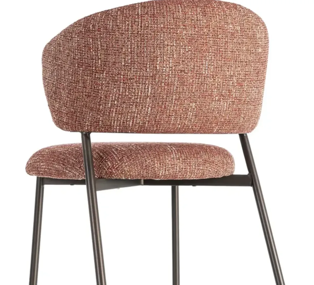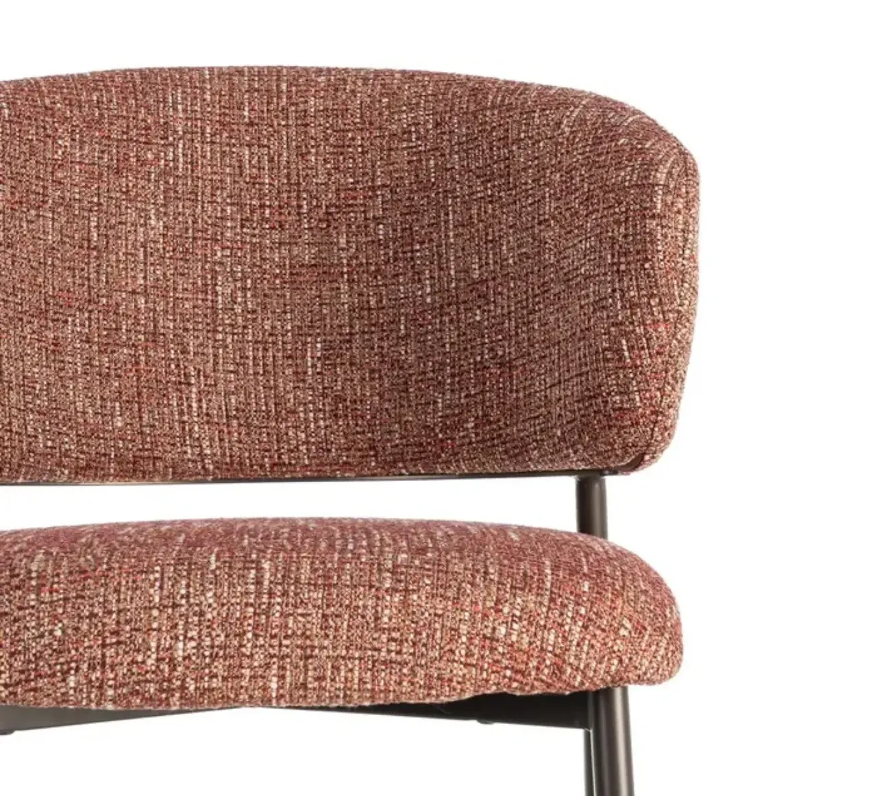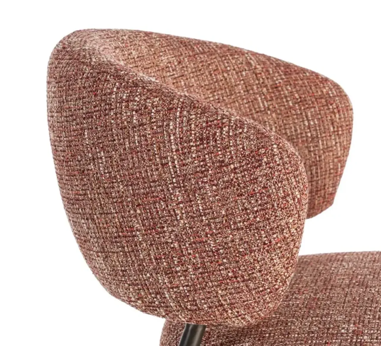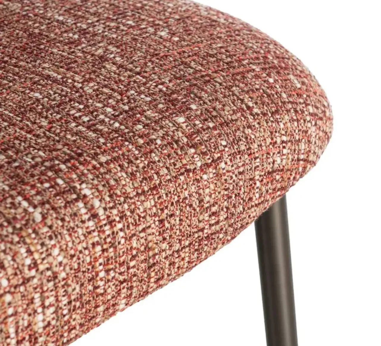 La silla de comedor jaspeada roja combina diseño contemporáneo y comodidad duradera, ideal para espacios modernos. Su estructura de metal resistente (acero) aporta estabilidad, mientras que el tejido 100% poliéster ofrece una textura suave y fácil de mantener.