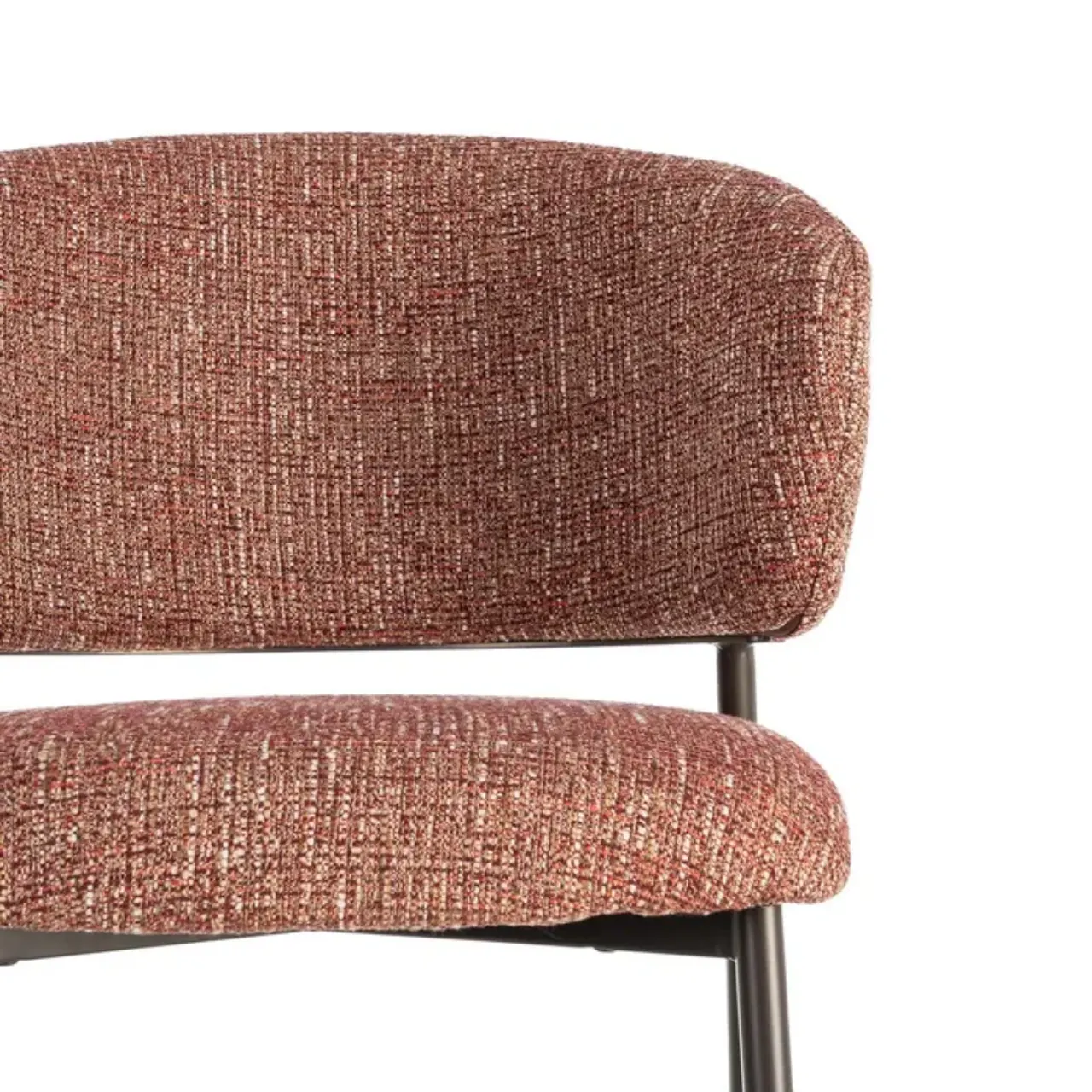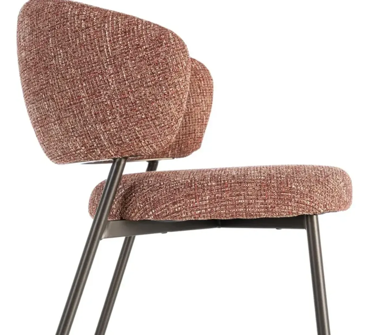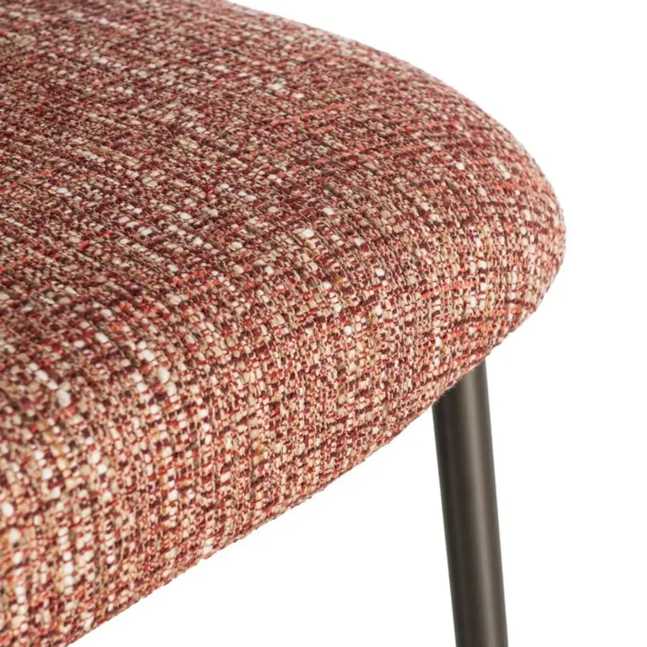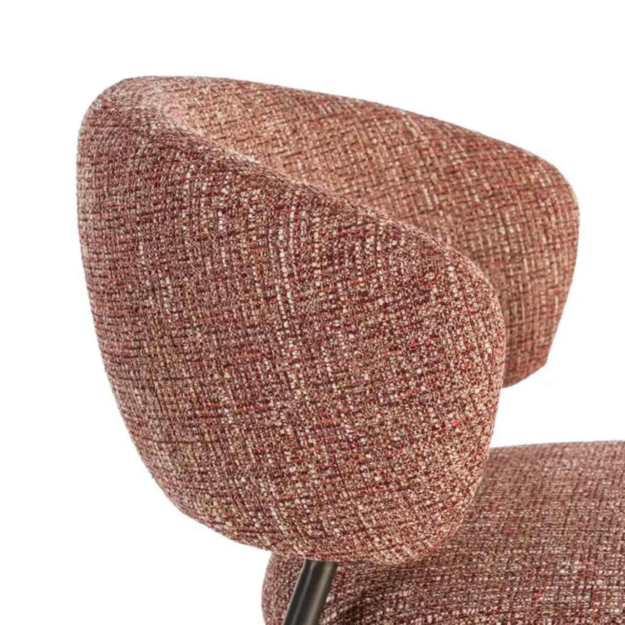 La silla de comedor jaspeada roja combina diseño contemporáneo y comodidad duradera, ideal para espacios modernos. Su estructura de metal resistente (acero) aporta estabilidad, mientras que el tejido 100% poliéster ofrece una textura suave y fácil de mantener.
