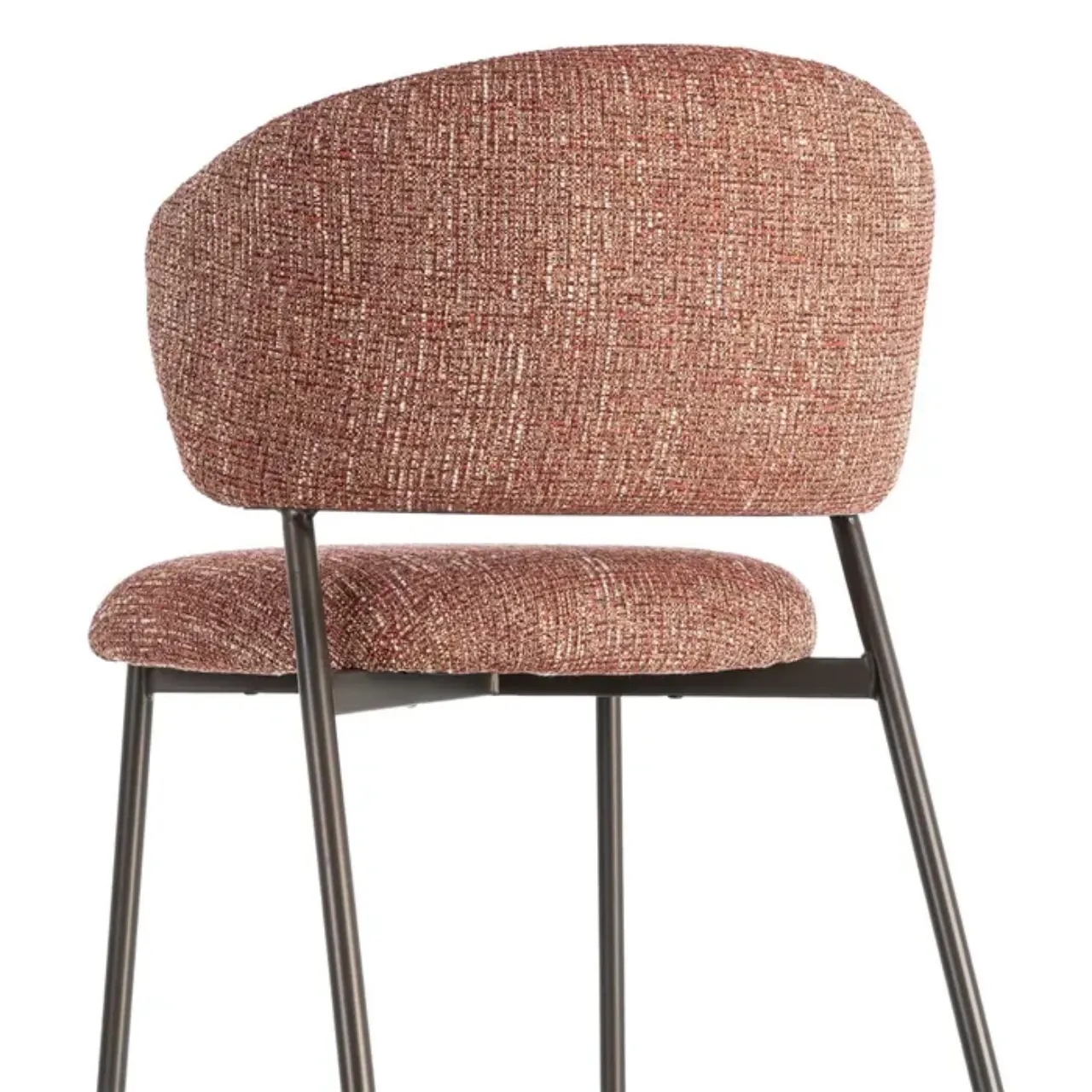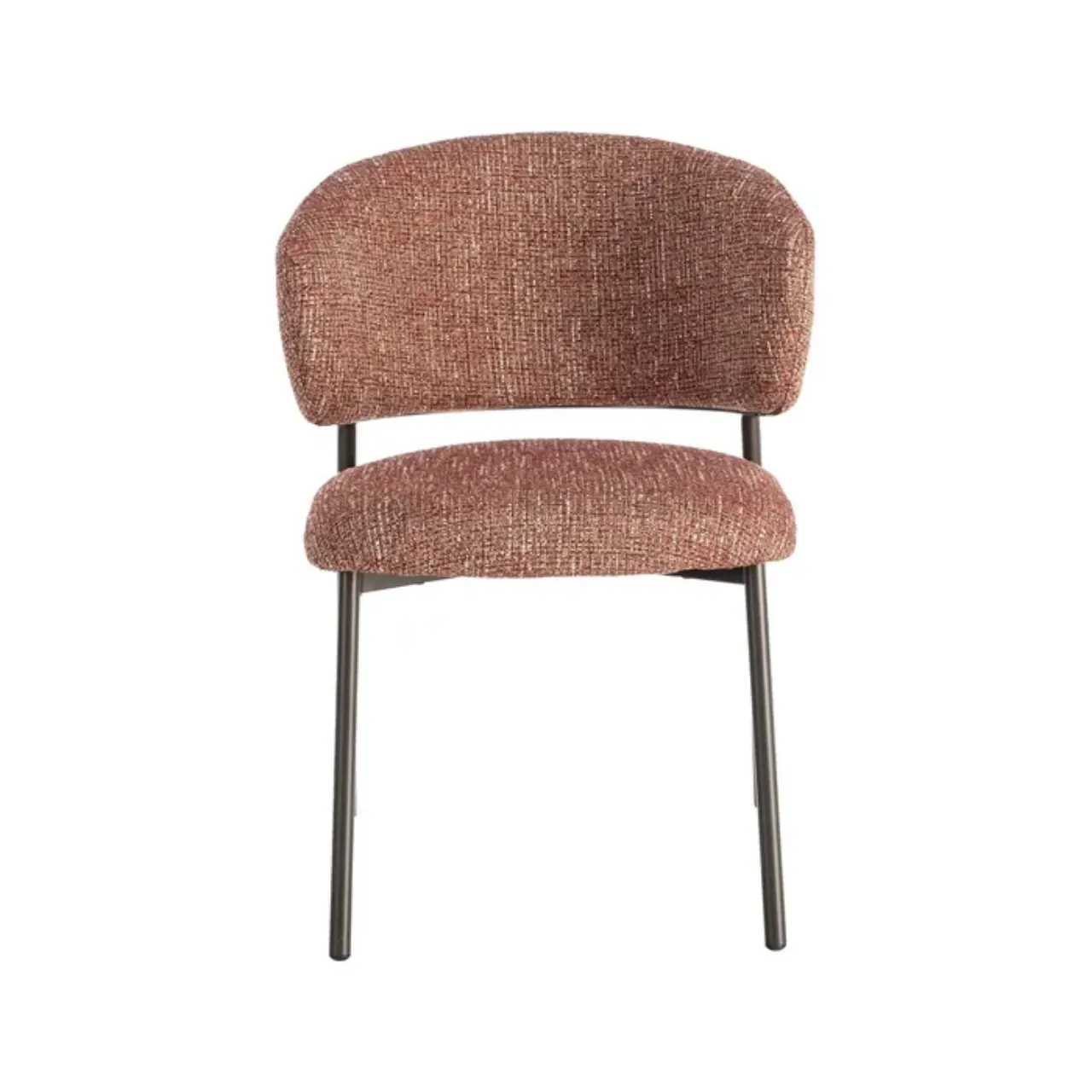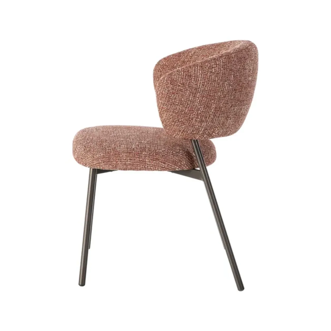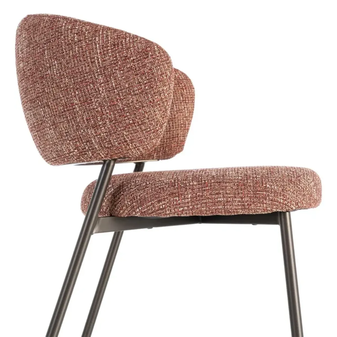 La silla de comedor jaspeada roja combina diseño contemporáneo y comodidad duradera, ideal para espacios modernos. Su estructura de metal resistente (acero) aporta estabilidad, mientras que el tejido 100% poliéster ofrece una textura suave y fácil de mantener.