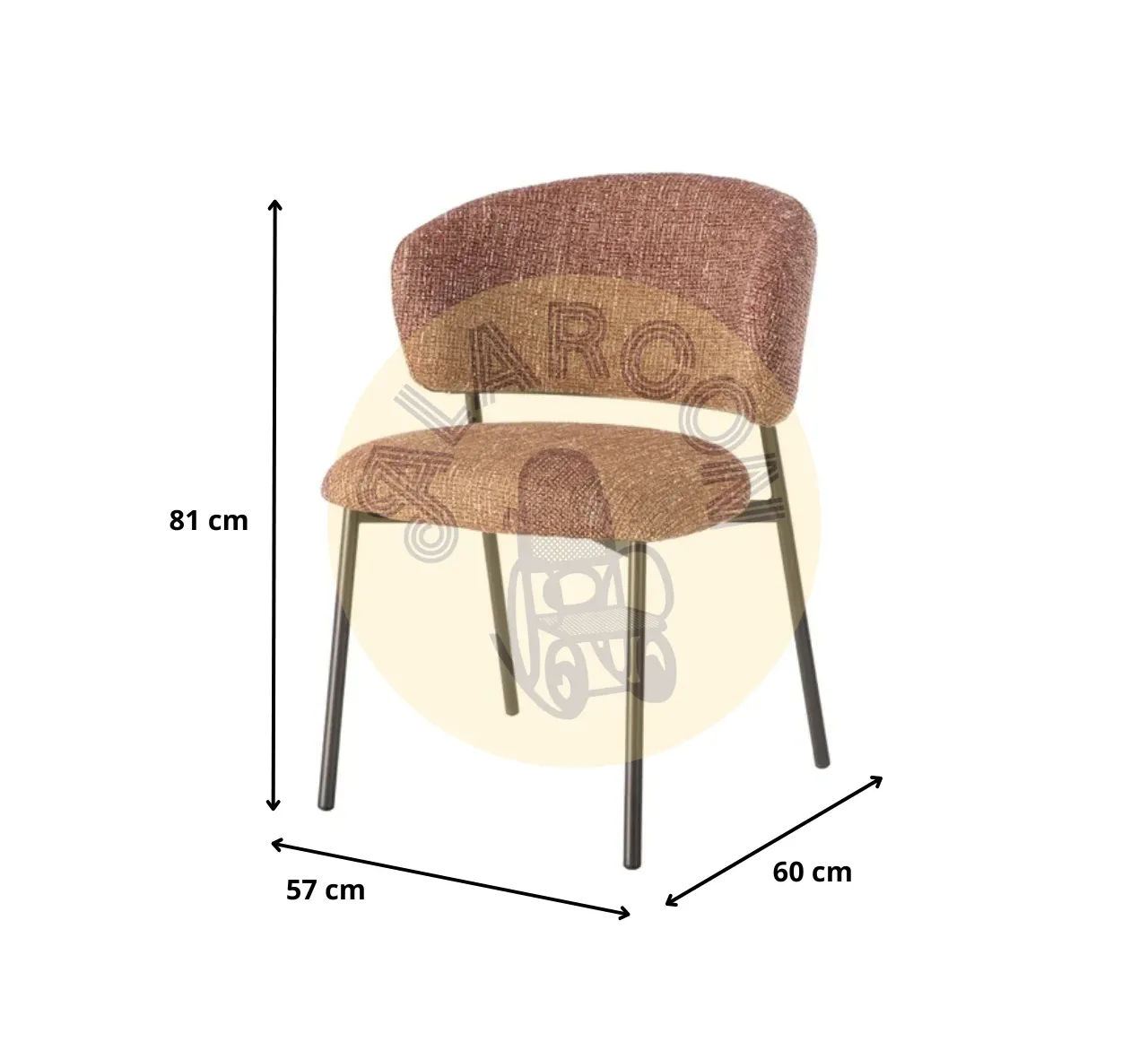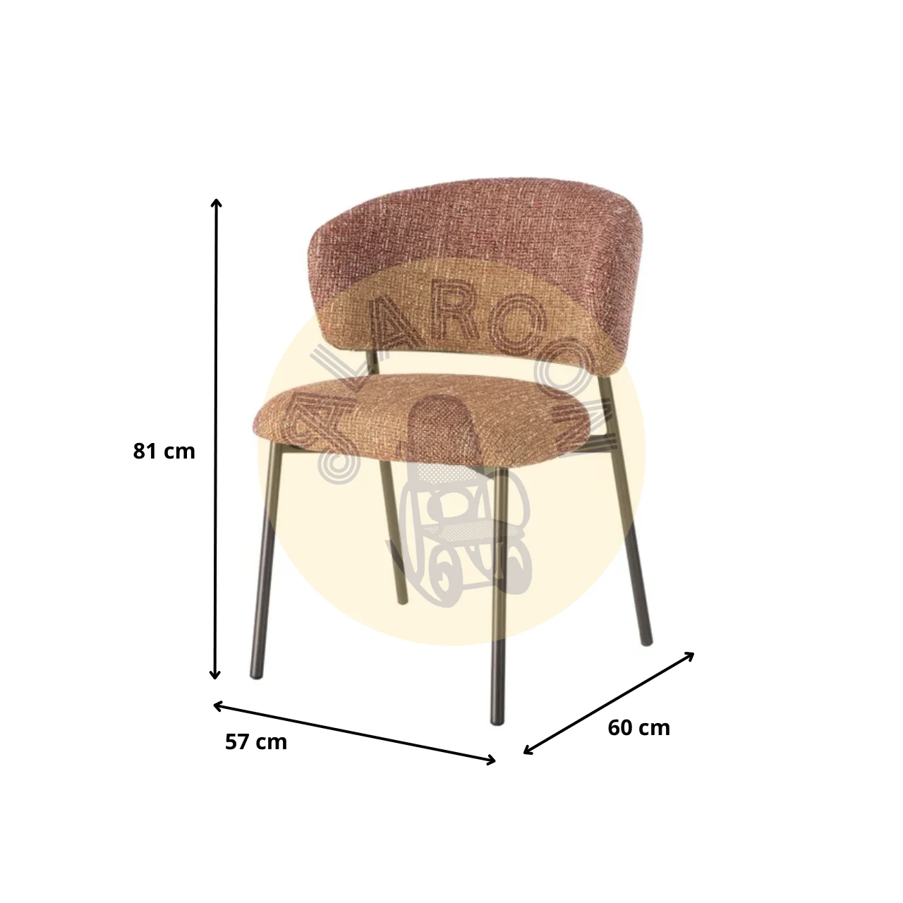 Con unas medidas de 57 x 60 x 81 cm, esta silla cuenta con una altura de asiento de 48 cm y un respaldo ergonómico de 38 cm que se adapta al cuerpo para un confort diario. Su estilo jaspeado en tono rojo añade un toque cálido y sofisticado al ambiente.