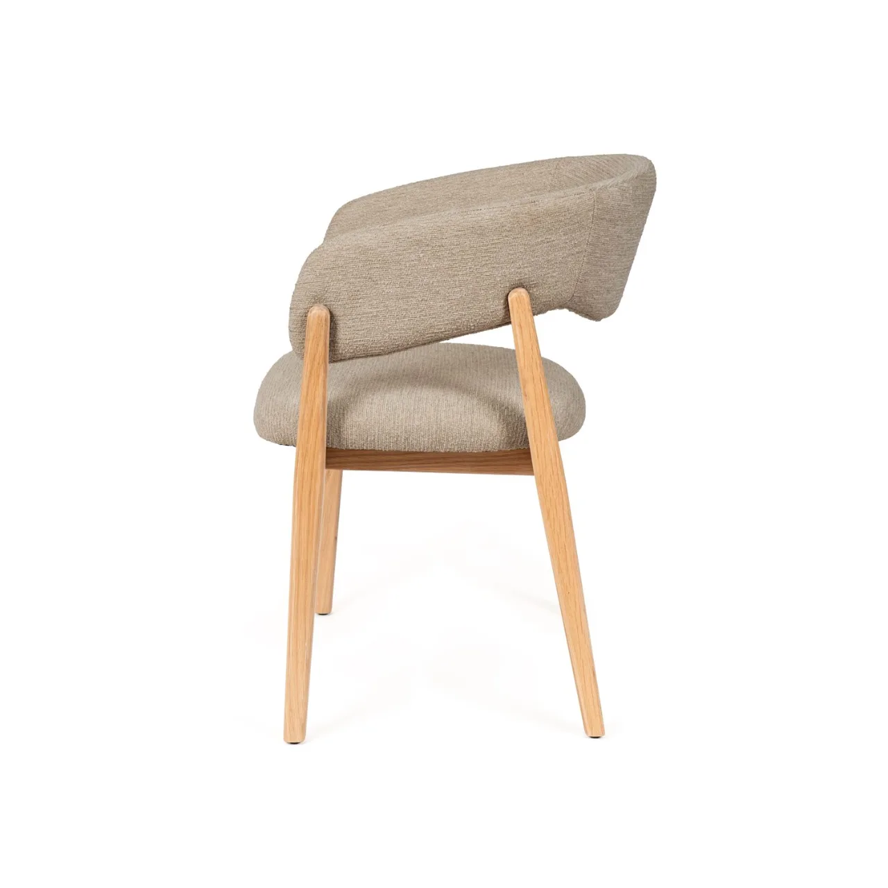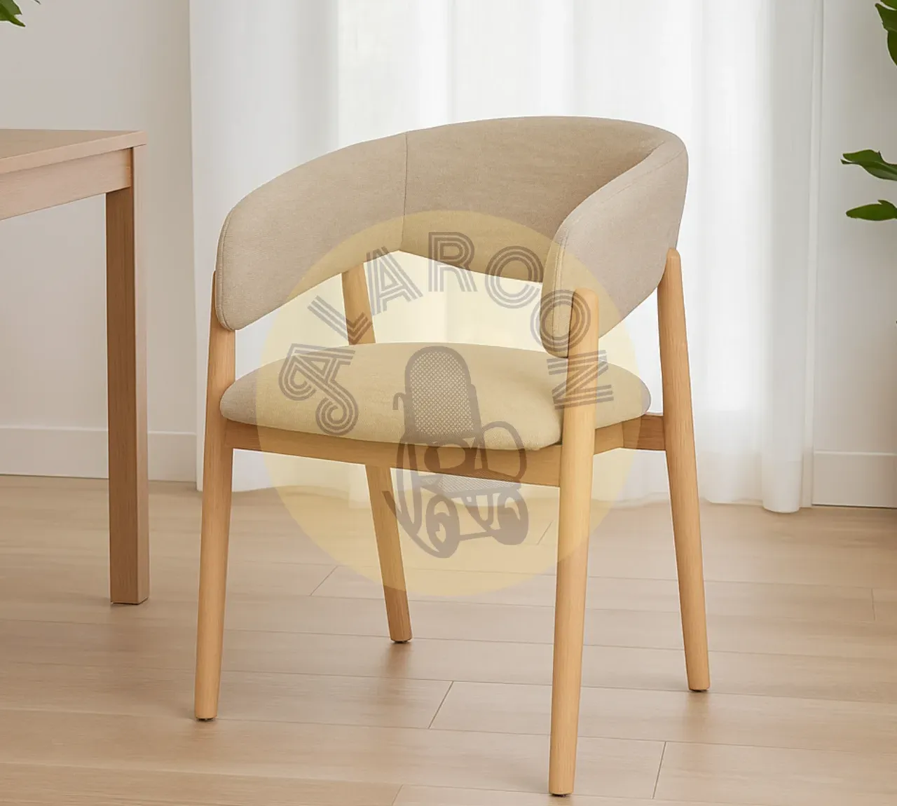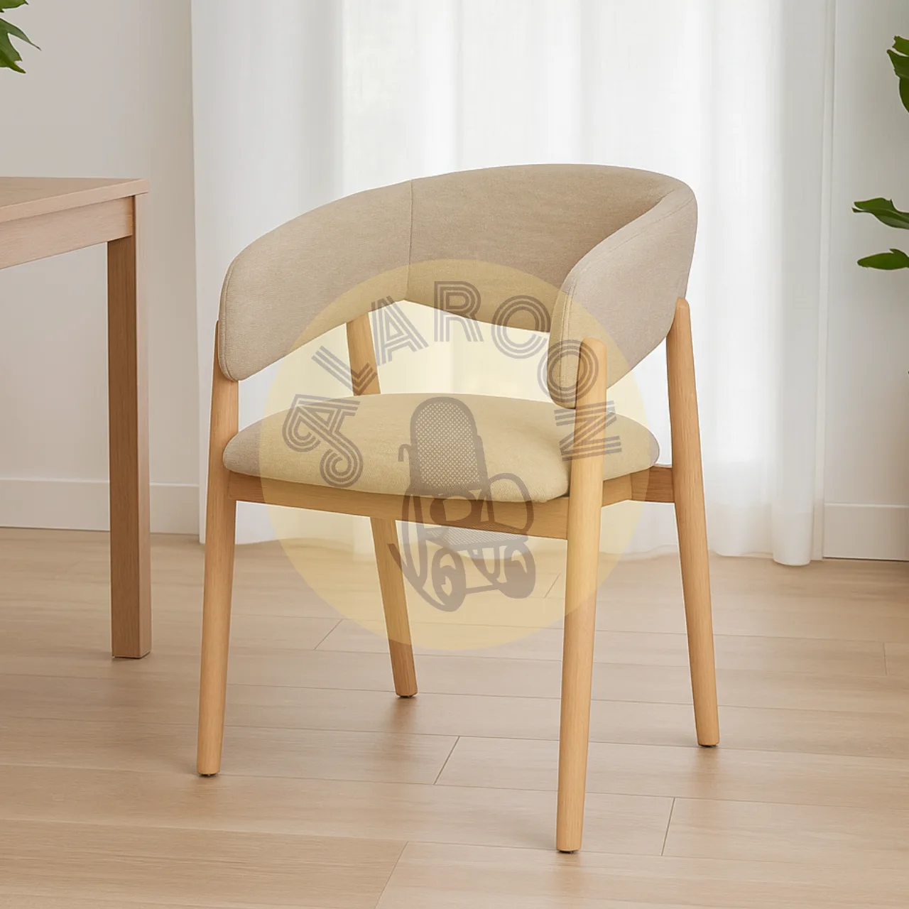 Diseñada para aportar comodidad y elegancia, esta silla de comedor tapizada beige combina una estructura de madera de haya con líneas suaves y contemporáneas. Su respaldo curvado y asiento acolchado ofrecen una ergonomía ideal para acompañar largas sobremesas.