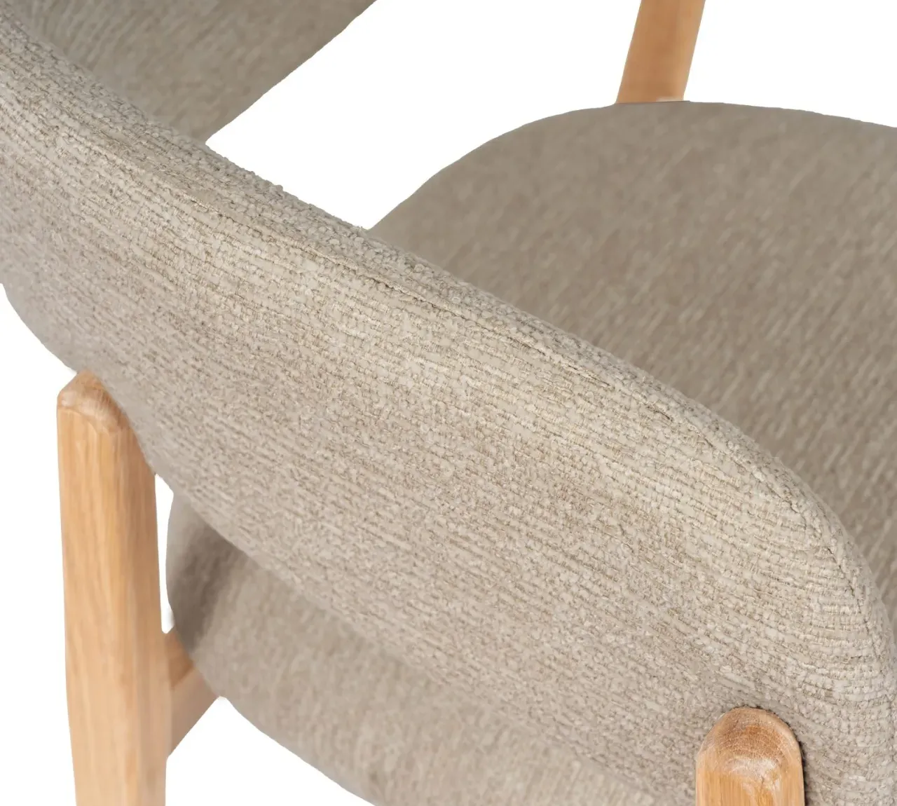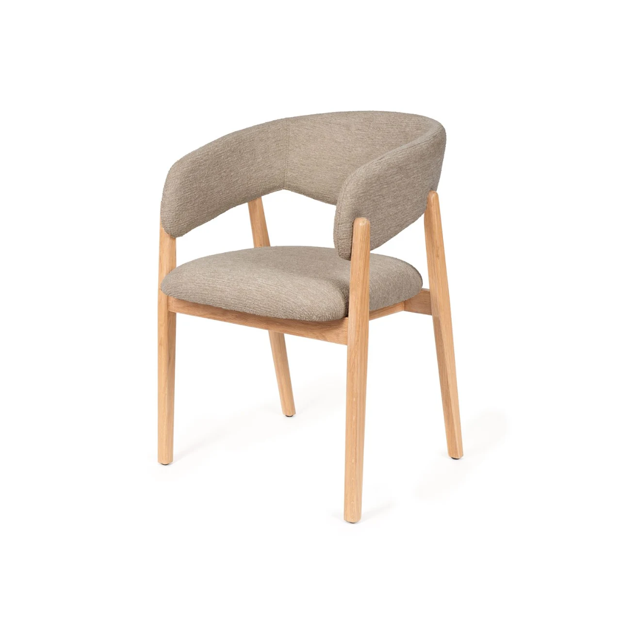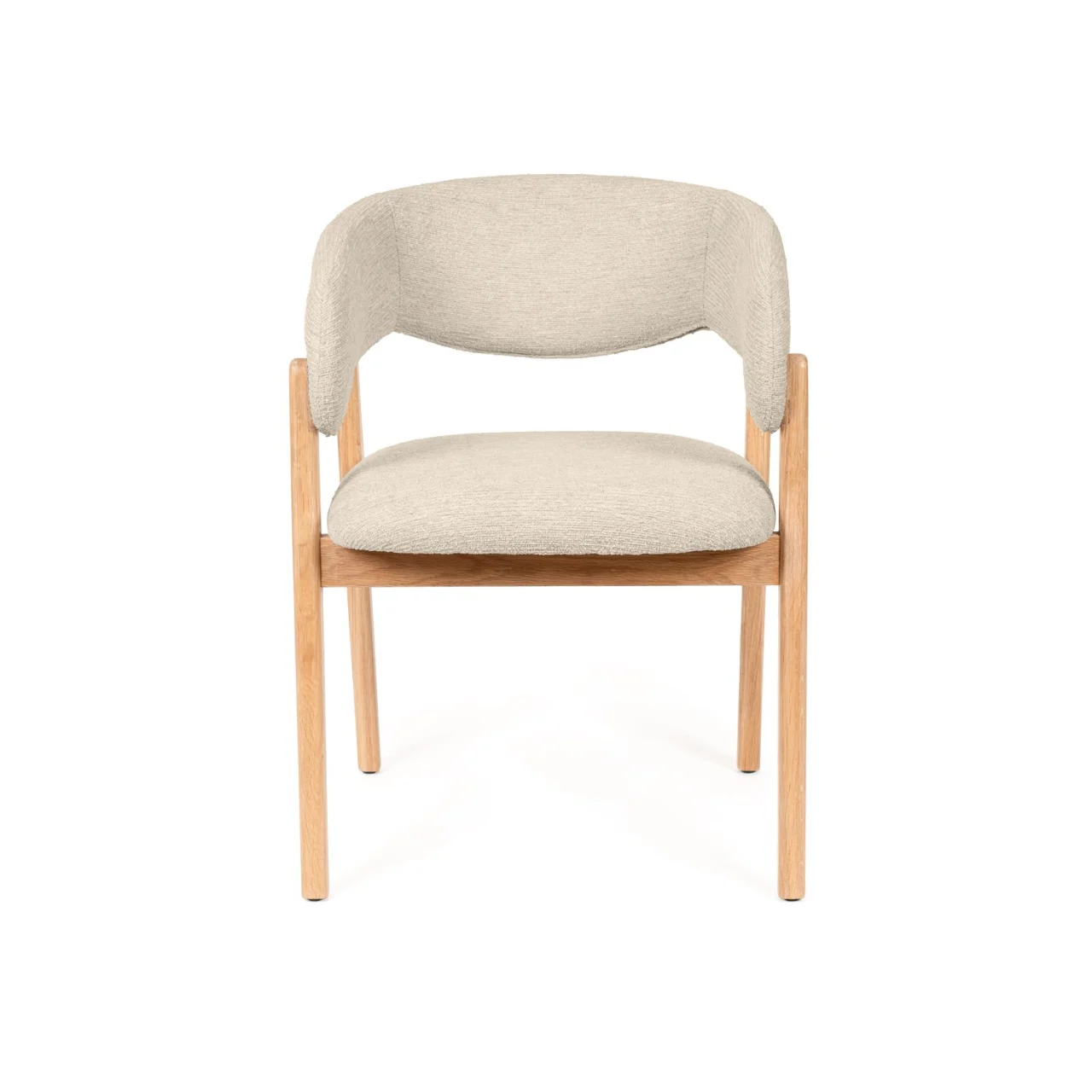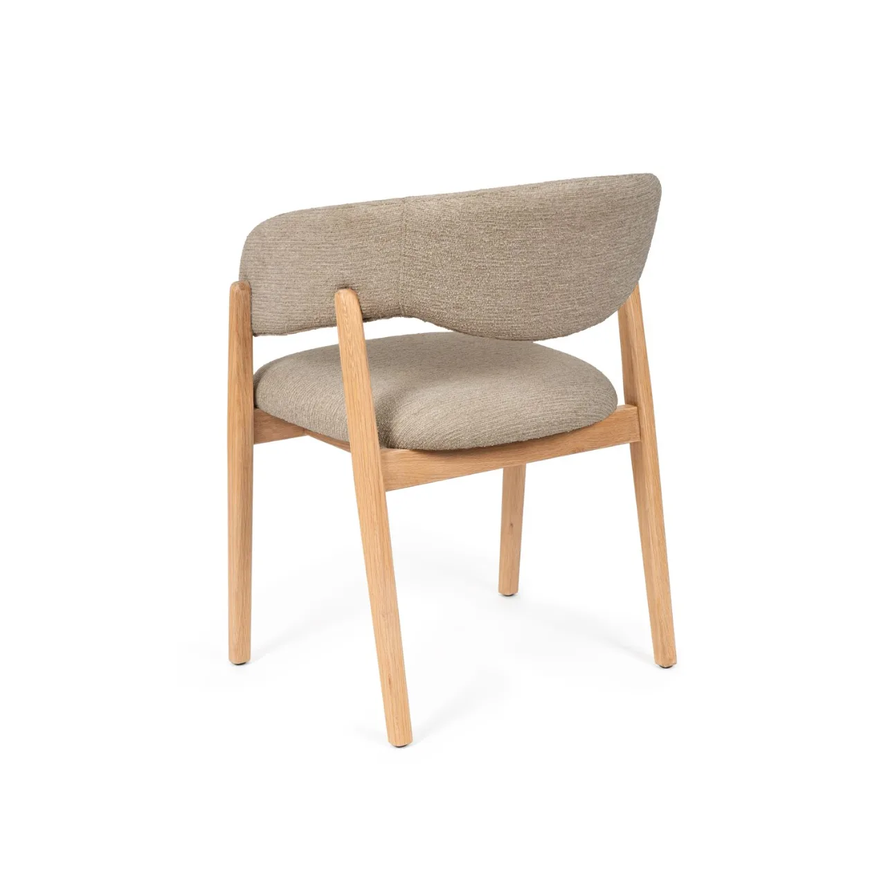 Diseñada para aportar comodidad y elegancia, esta silla de comedor tapizada beige combina una estructura de madera de haya con líneas suaves y contemporáneas. Su respaldo curvado y asiento acolchado ofrecen una ergonomía ideal para acompañar largas sobremesas.