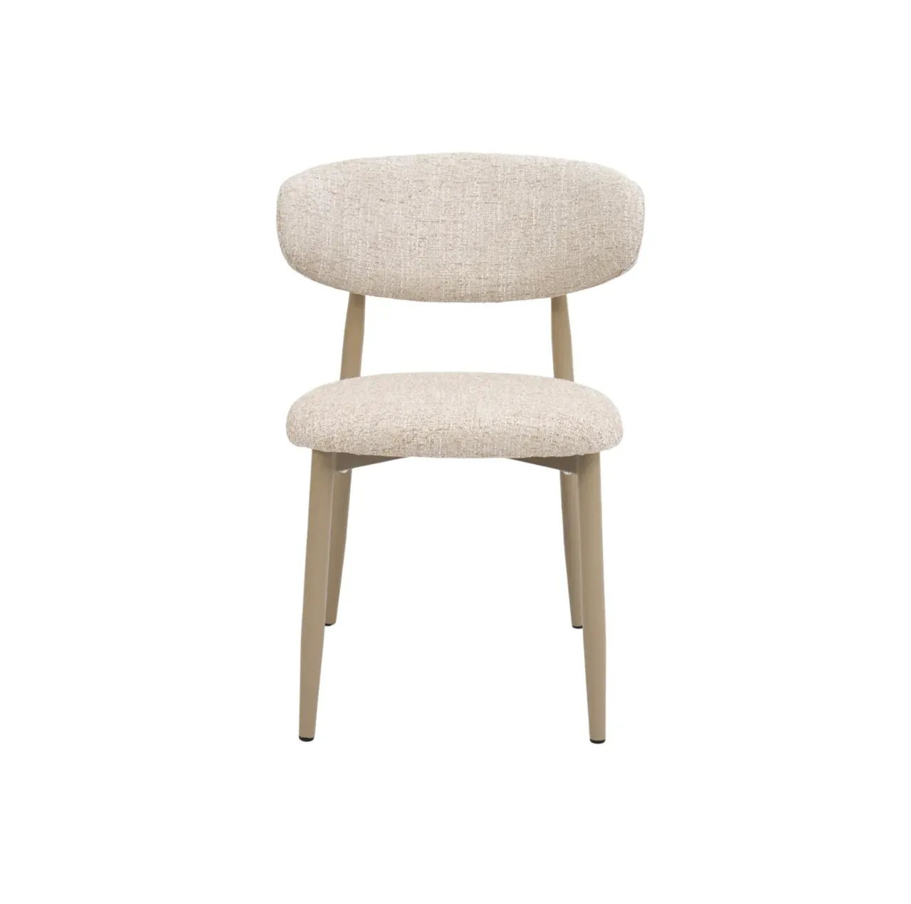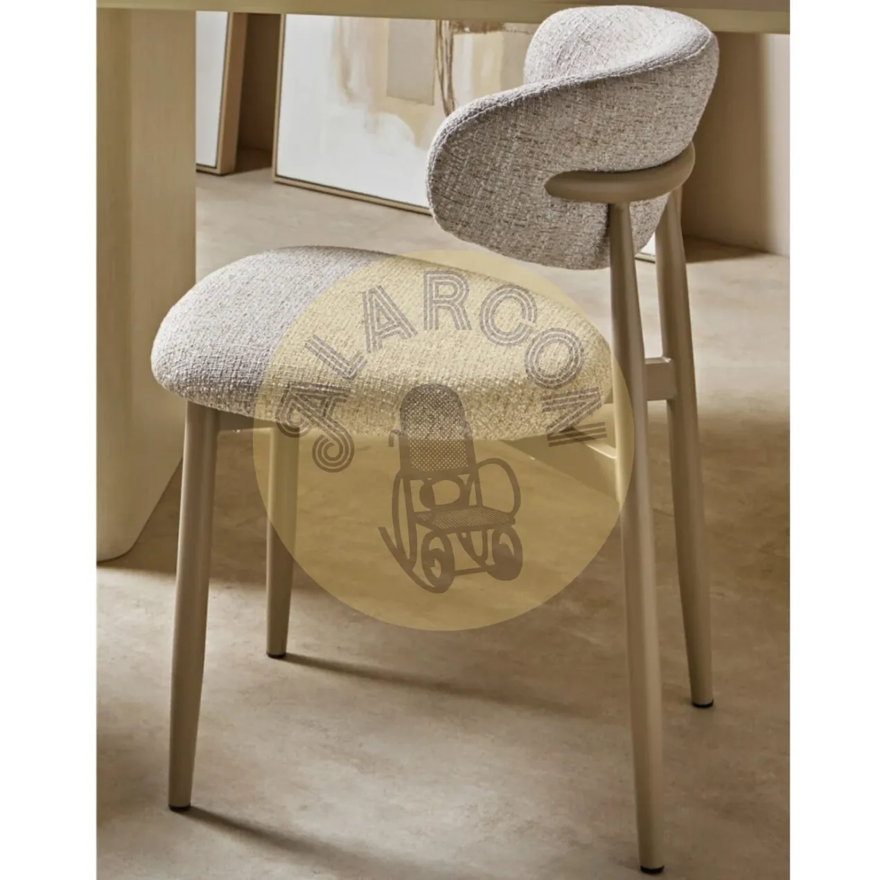 Diseño contemporáneo con una estética cuidada que encaja con naturalidad en comedores actuales y proyectos contract. Esta silla de comedor combina un tapizado en poliéster en tonos beige y topo con una estructura metálica resistente, aportando estilo, sobriedad y una presencia visual coherente en cualquier espacio.