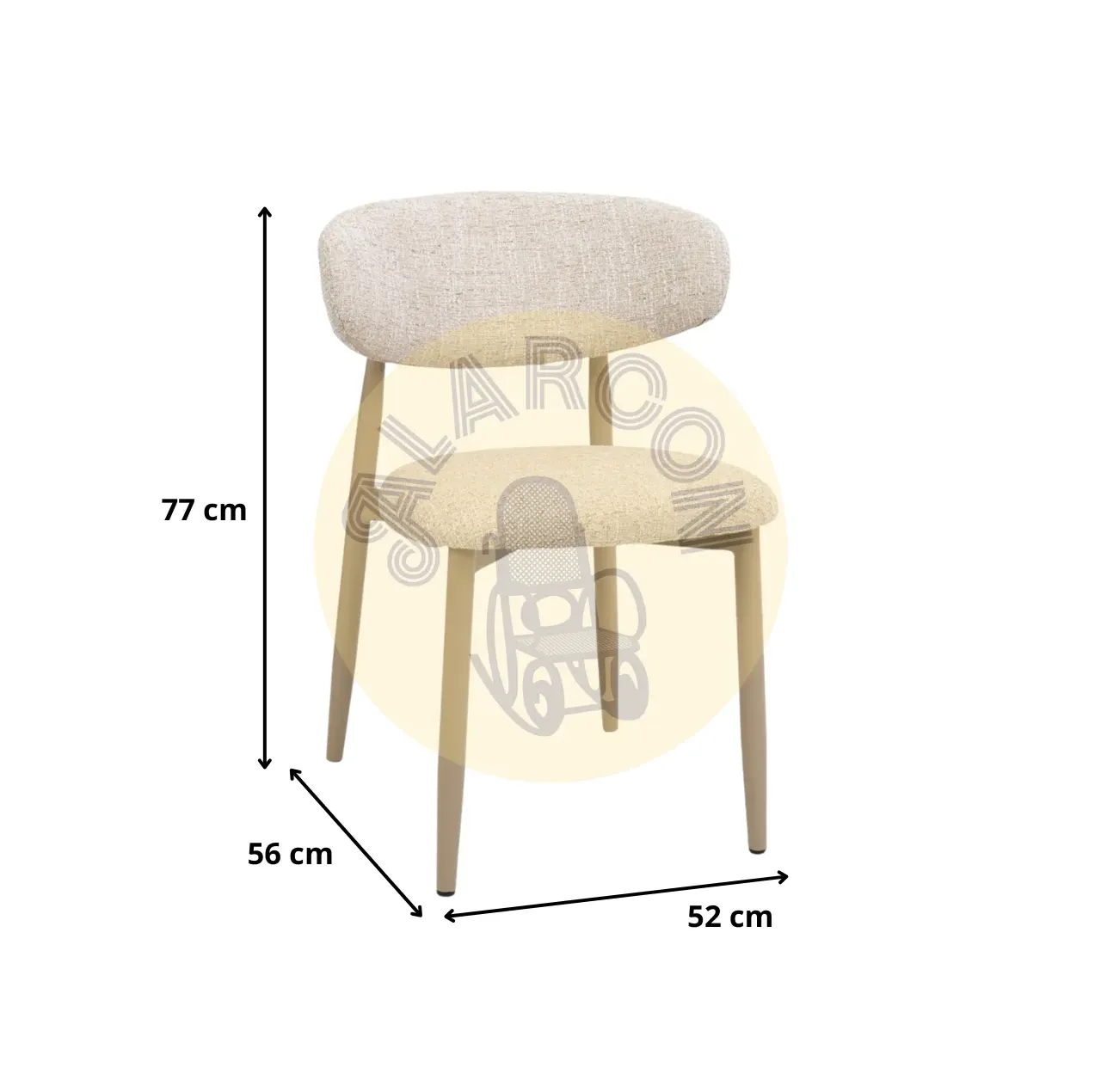 Su asiento tapizado ofrece una sensación confortable para el uso diario, con una altura de asiento de 47 cm y unas proporciones pensadas para mesas estándar. Las medidas totales 52x56x77 cm y el asiento de 45×46 cm favorecen una postura cómoda sin recargar el ambiente, manteniendo una imagen ligera y actual.