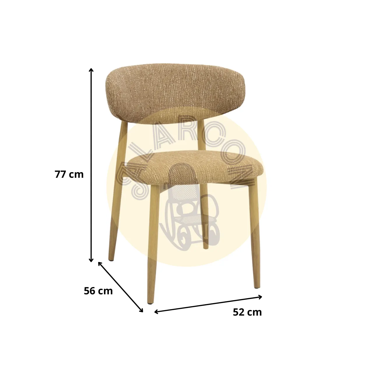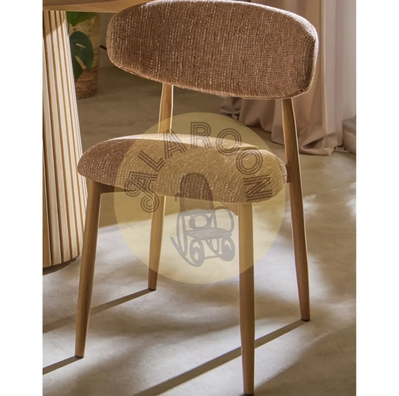 Diseñada para espacios de comedor actuales, esta silla de comedor combina un estilo contemporáneo con acabados naturales y un elegante tono mostaza. El asiento tapizado en poliéster aporta una textura agradable y visualmente cálida, ideal para integrarse en ambientes modernos o nórdicos sin sobrecargar el espacio.