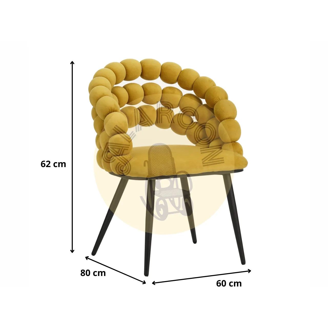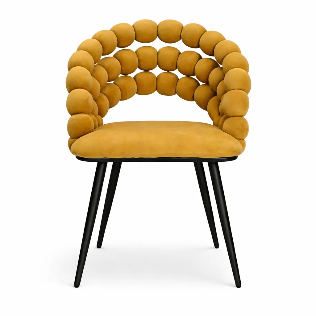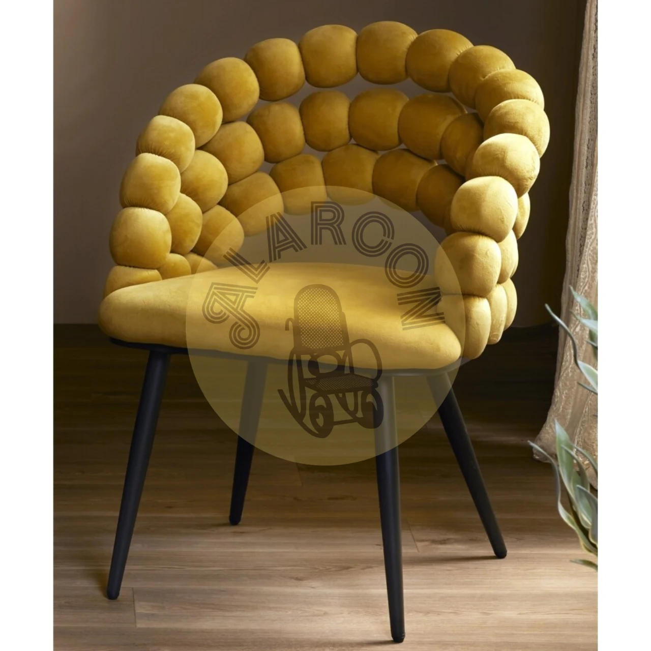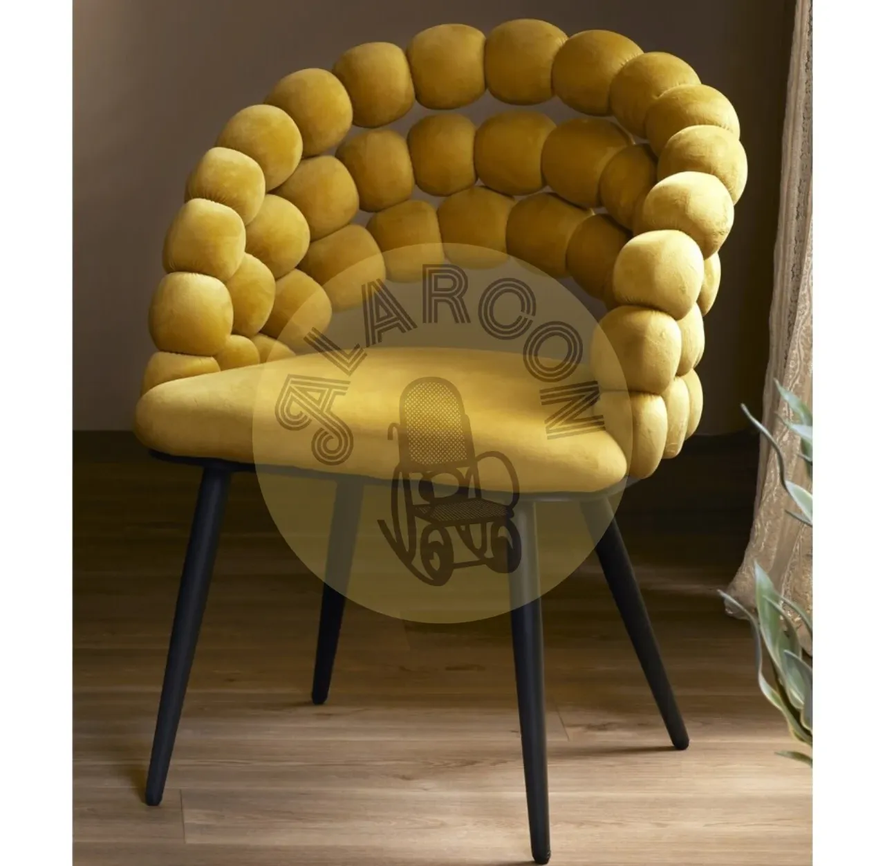 Diseñada para destacar en interiores contemporáneos, esta silla de diseño moderno combina una estética escultural con un acabado tapizado en poliéster de alta presencia en color amarillo y negro, aportando carácter a comedores, salones o espacios contract sin perder coherencia visual.