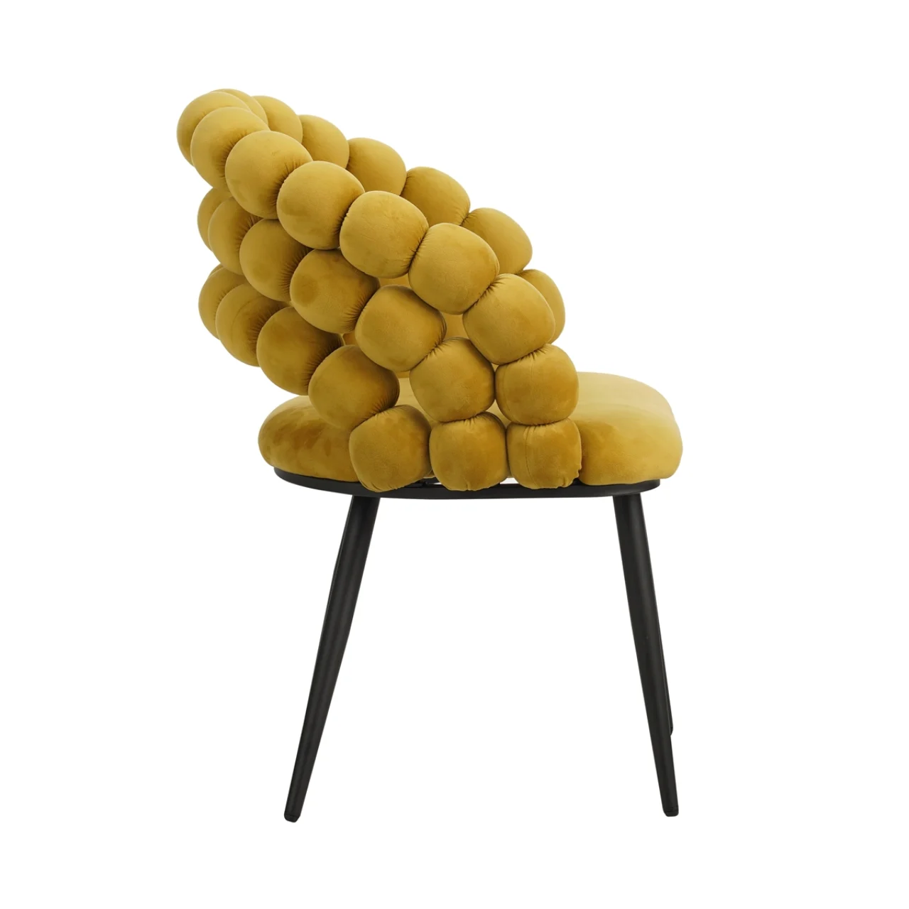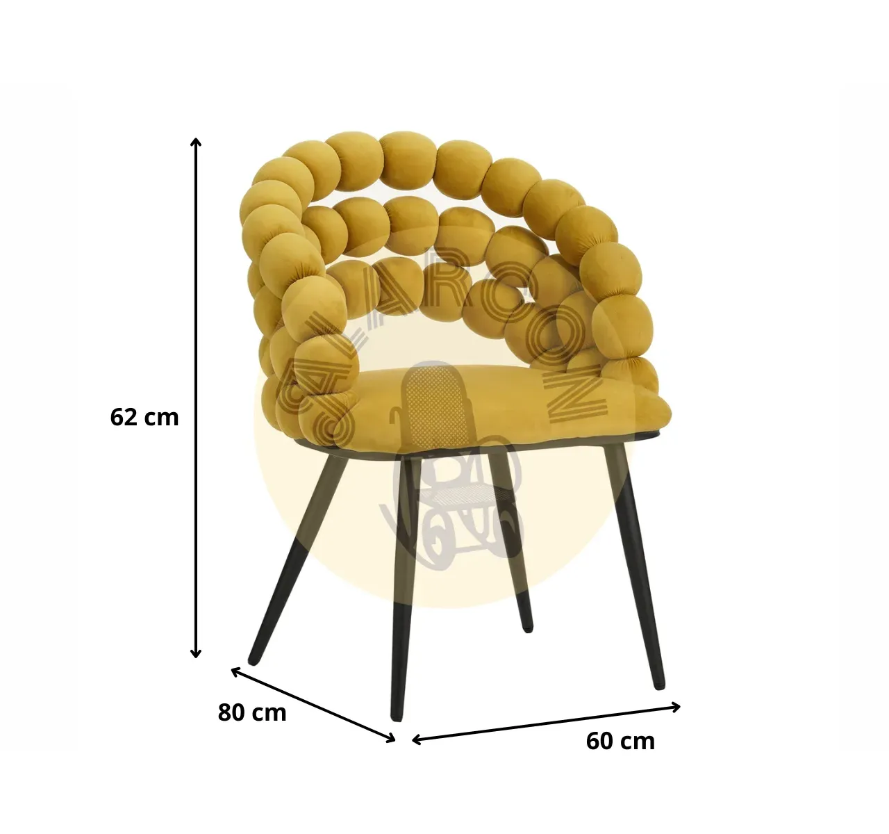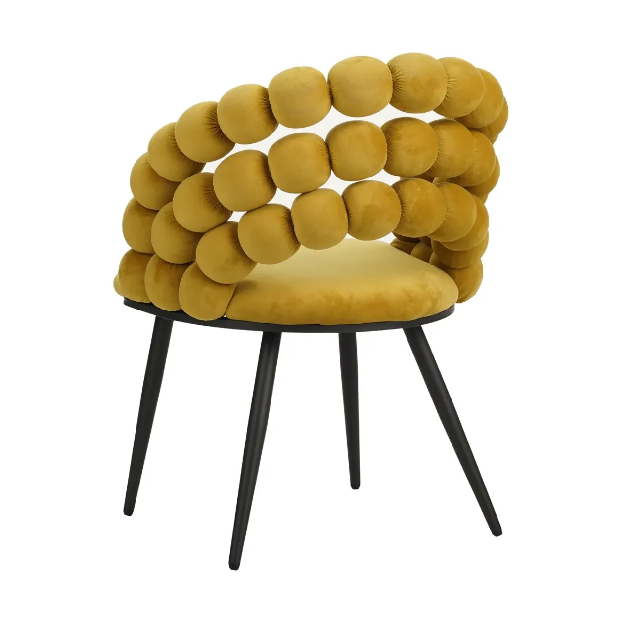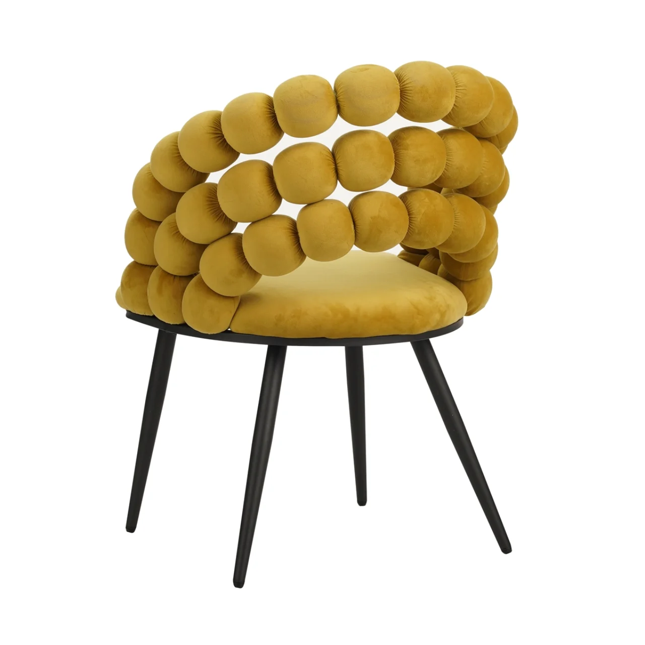 Diseñada para destacar en interiores contemporáneos, esta silla de diseño moderno combina una estética escultural con un acabado tapizado en poliéster de alta presencia en color amarillo y negro, aportando carácter a comedores, salones o espacios contract sin perder coherencia visual.