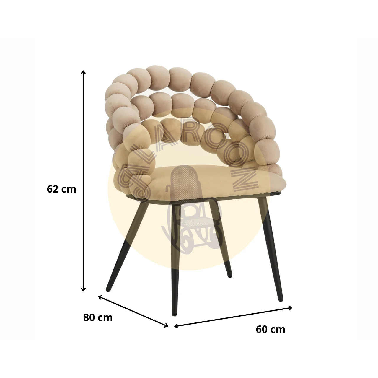 Silla de Diseño Moderno Tapizada en Poliéster Beige y Negro con Estructura Metálica – 62×60×80 cm