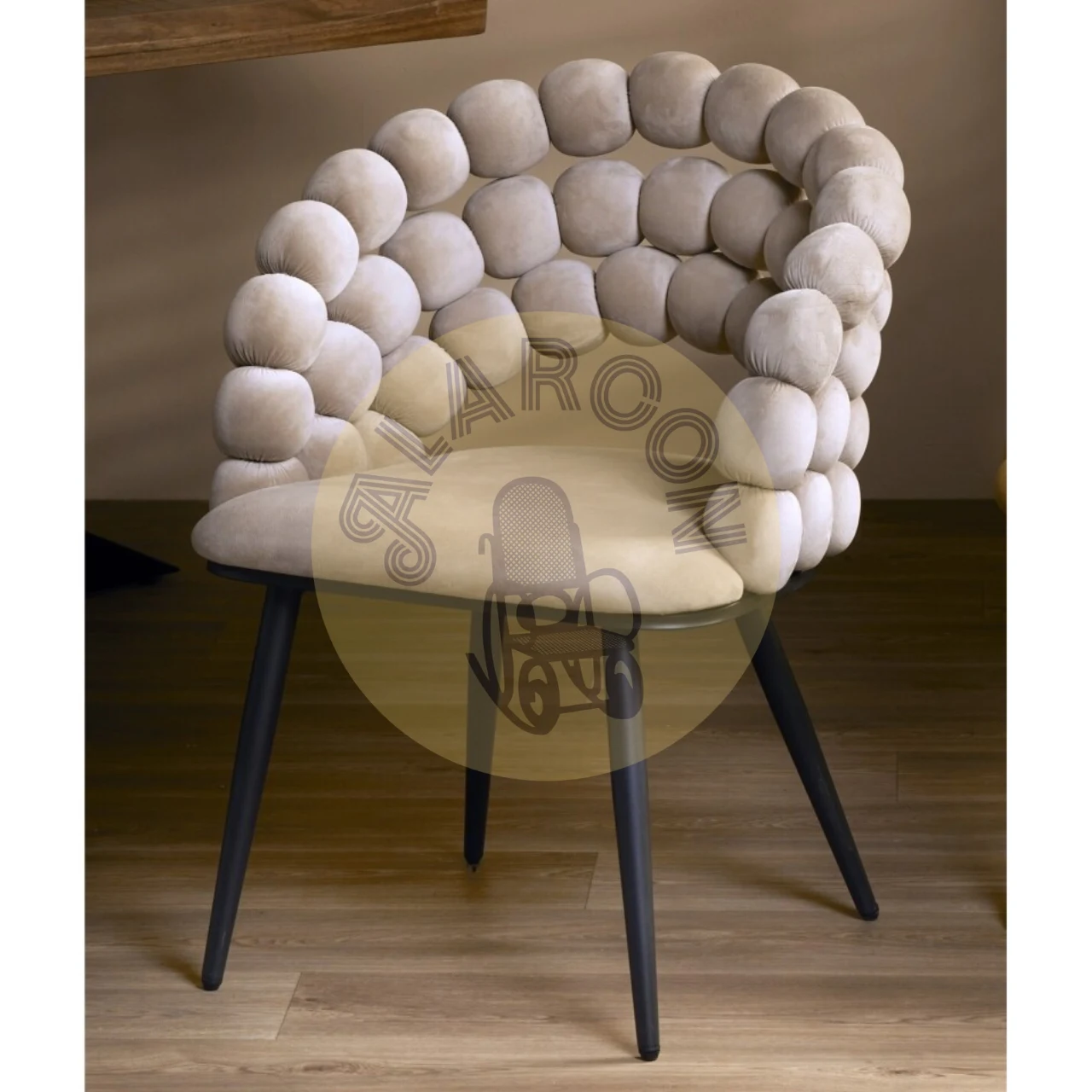 Aporta carácter a cualquier espacio con esta silla de diseño moderno de líneas actuales y estética cuidada, pensada para interiores que buscan estilo y personalidad. Su tapizado en poliéster combina el tono beige con detalles en negro, logrando una presencia elegante y fácil de integrar en ambientes contemporáneos.