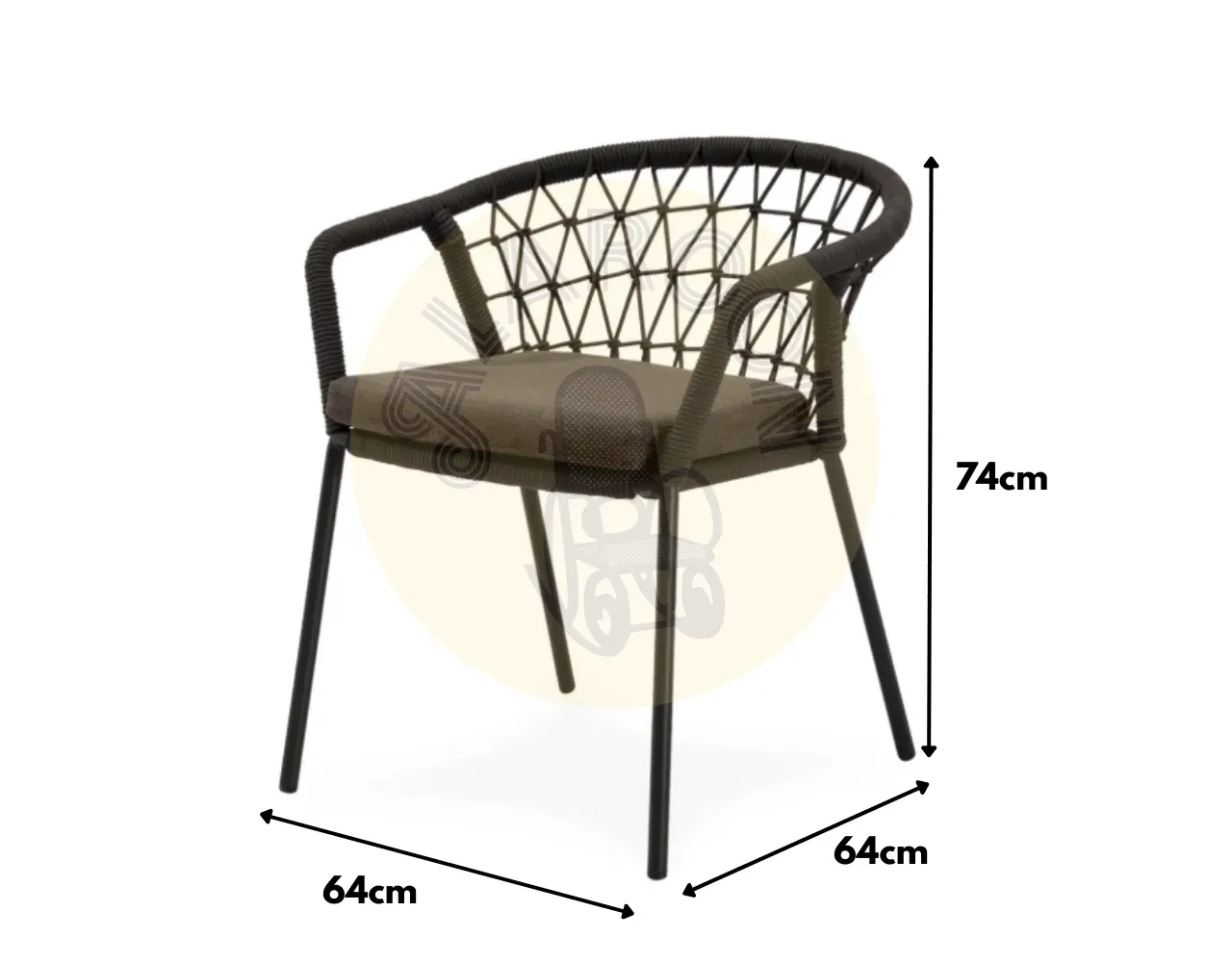 Con unas patas de acero galvanizado tratadas para exteriores y ligeramente inclinadas, garantiza estabilidad y resistencia, mientras que el asiento acolchado en poliéster proporciona confort adicional para largas tertulias o momentos de relajación al aire libre.