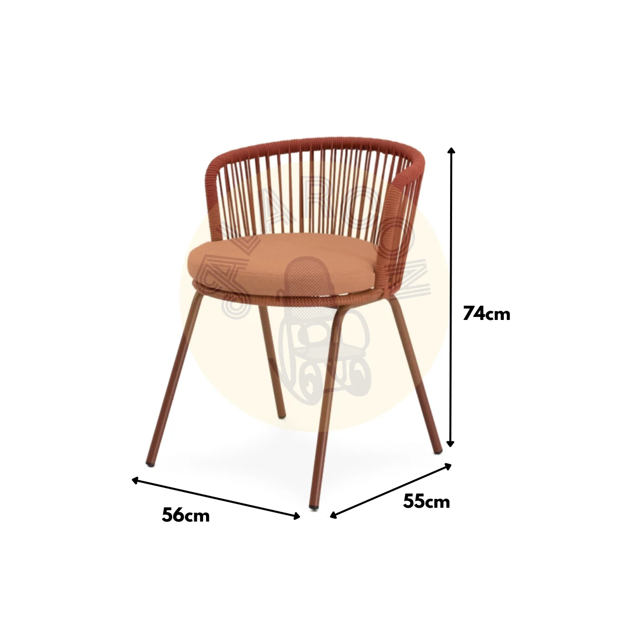 Con unas patas de acero galvanizado tratadas para uso exterior, la silla garantiza estabilidad, resistencia y un diseño minimalista que mantiene la elegancia del conjunto. Su estructura ergonómica asegura una experiencia de asiento confortable incluso durante largas sobremesas o momentos de relax.