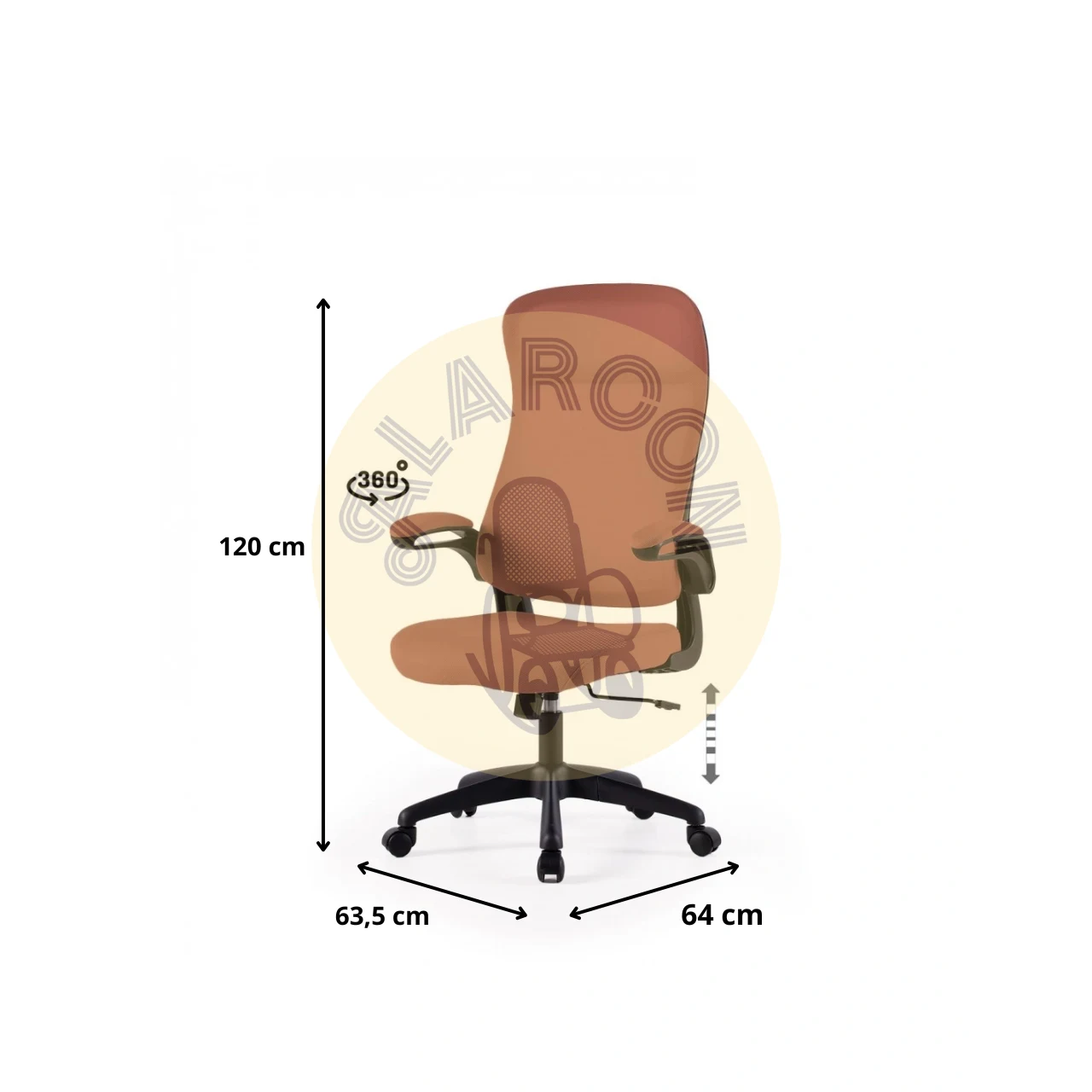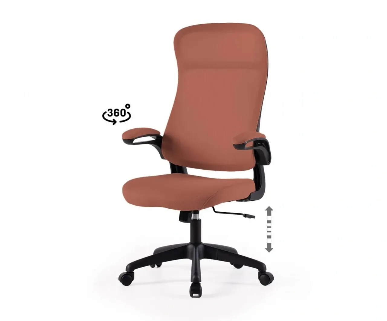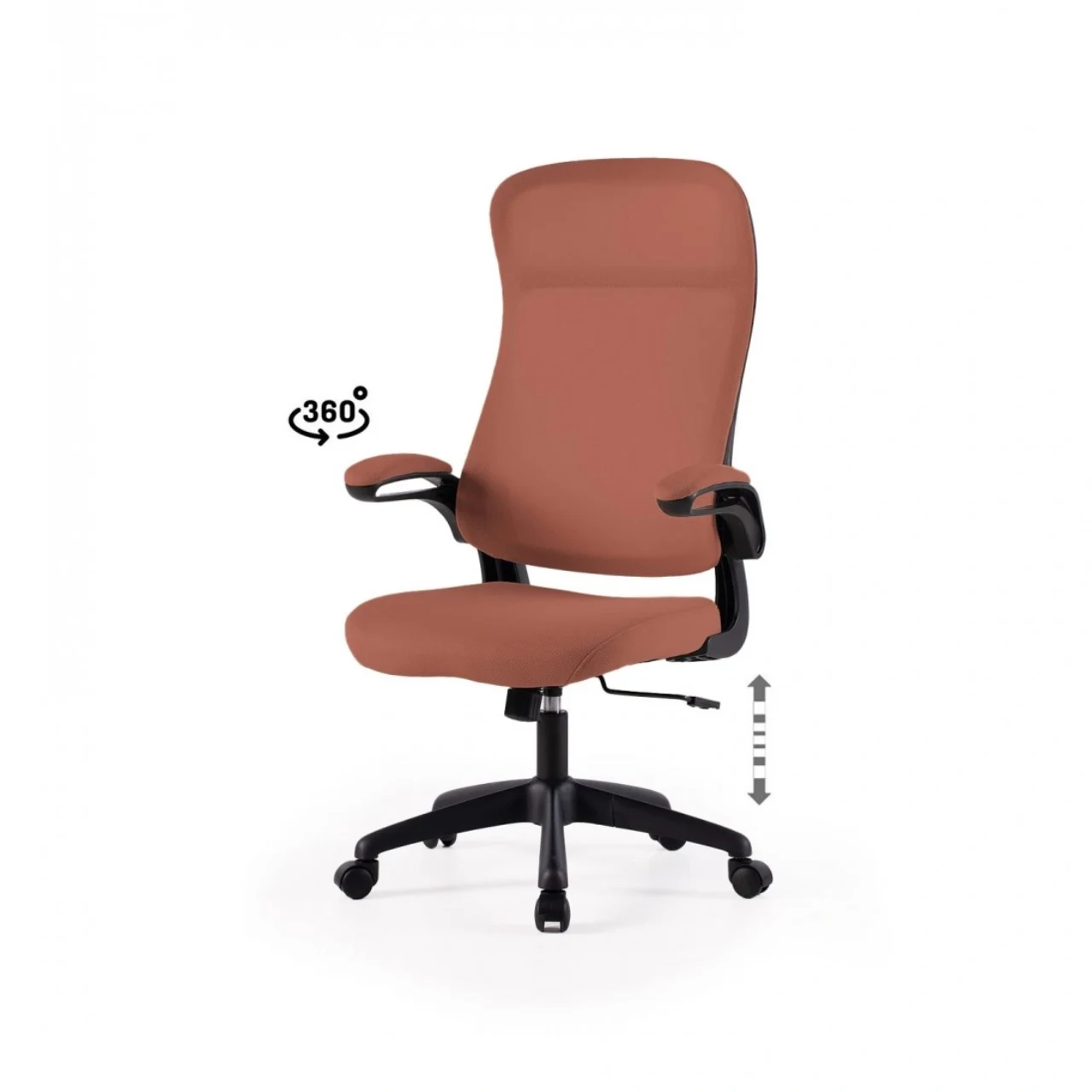 Pensada para un uso prolongado, la silla de oficina ergonómica ARTIK ofrece comodidad y soporte gracias a su respaldo alto y tejido transpirable en color terracota. Su diseño moderno se adapta a cualquier entorno profesional o doméstico, aportando estilo y funcionalidad.