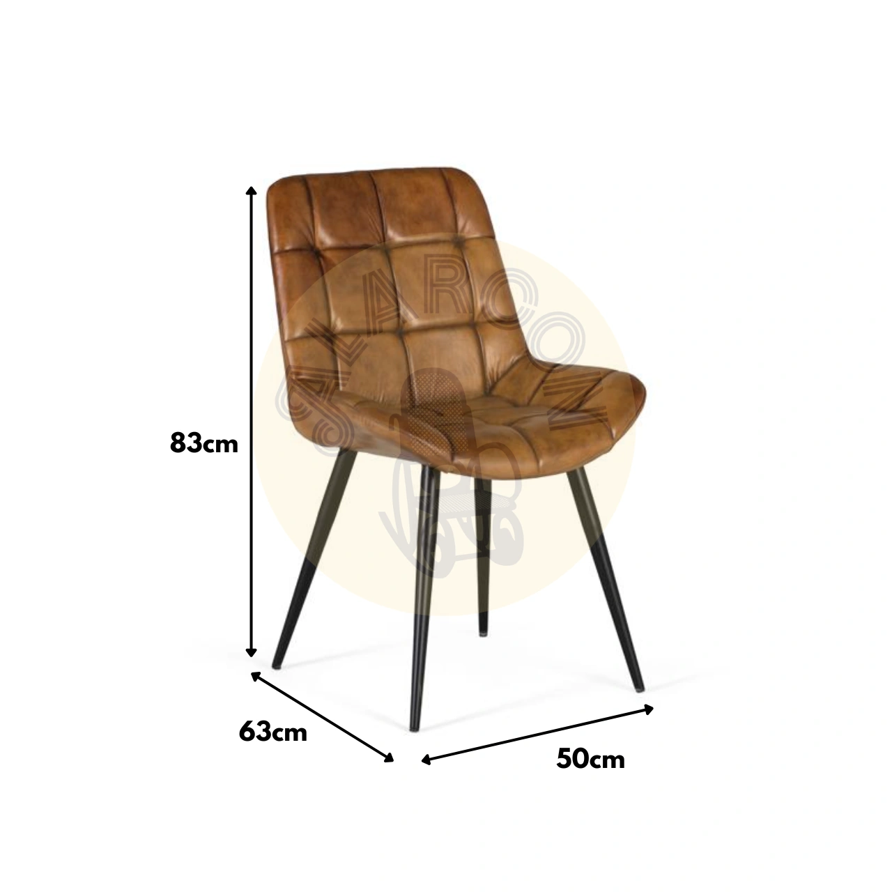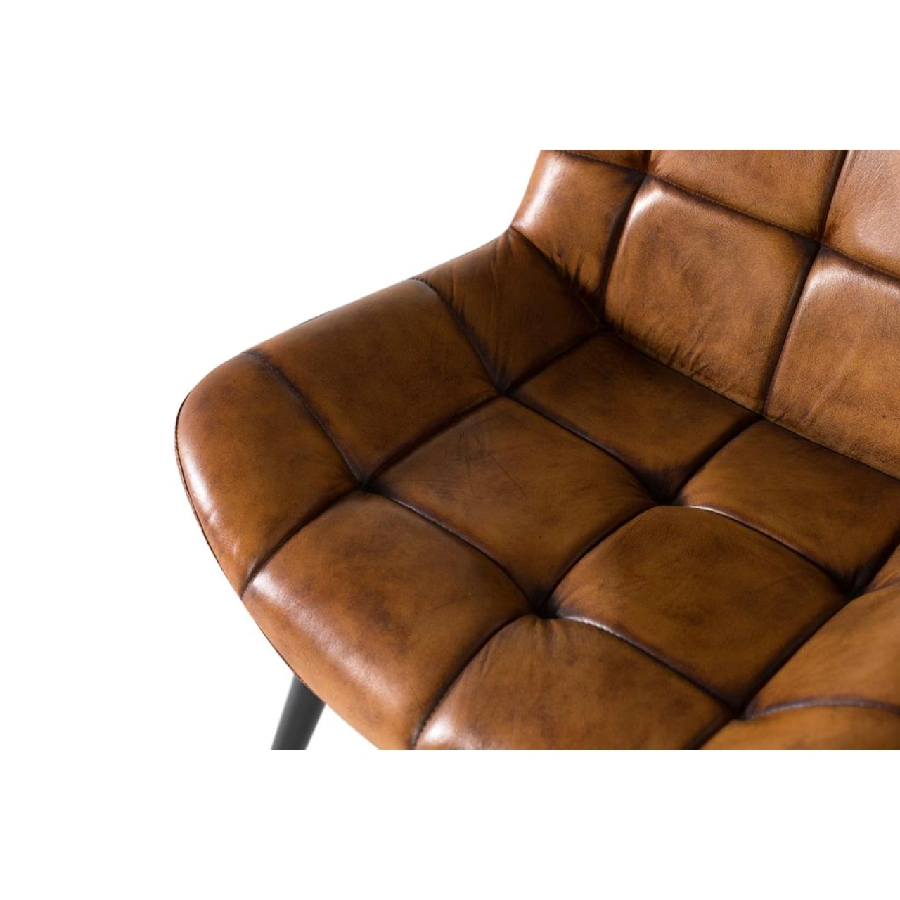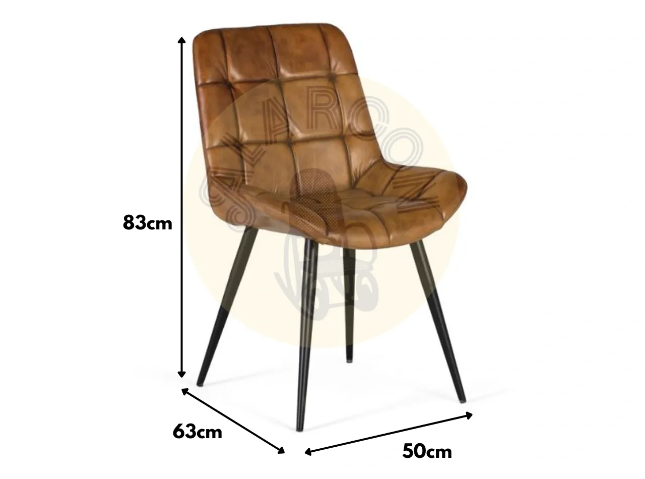Crea un ambiente cálido con esta silla tapizada en piel marrón, un material de textura suave, gran durabilidad y presencia elegante. Su capitoné sin botones aporta un acabado decorativo, limpio y actual, ideal para salones que buscan confort y estilo.