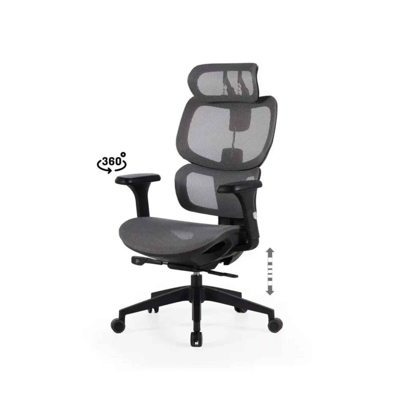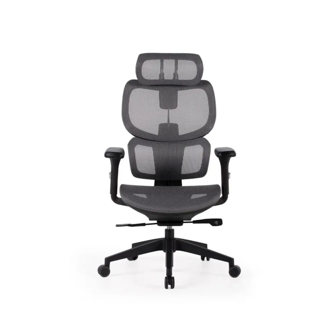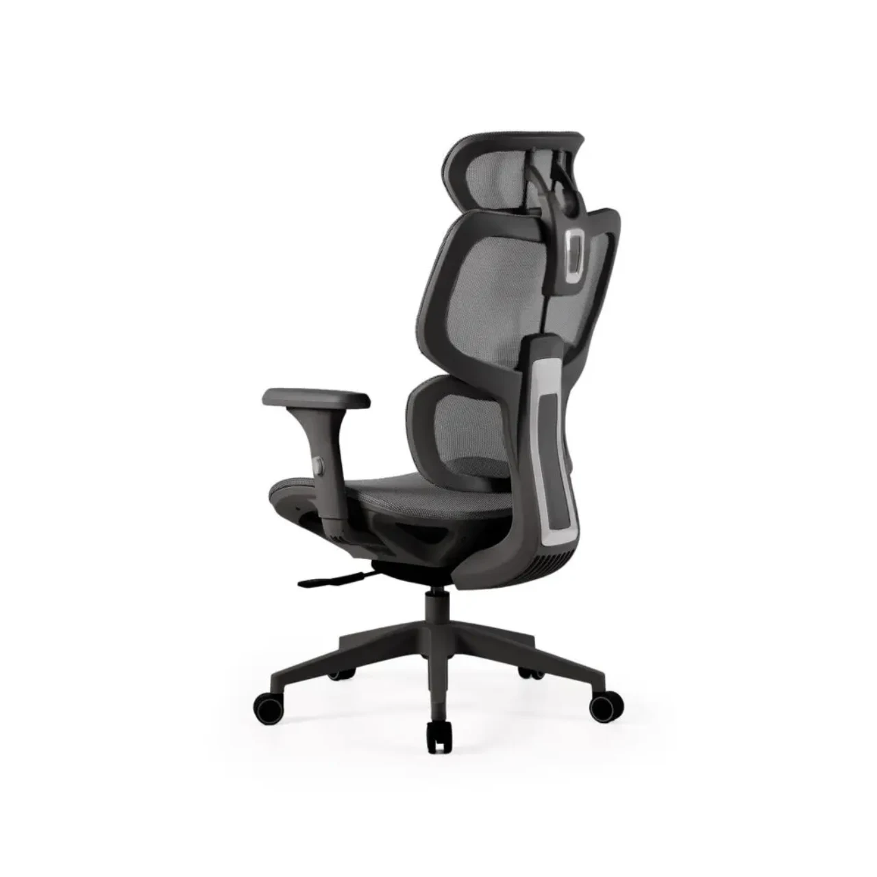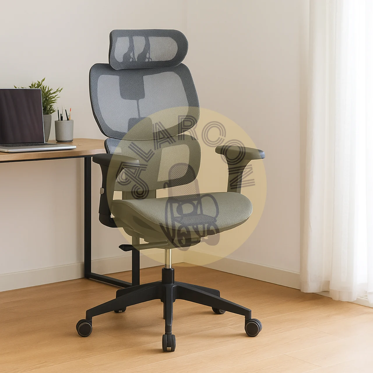 Pensada para largas jornadas de trabajo, esta silla ergonómica de oficina ofrece máximo confort gracias a su respaldo de malla transpirable y su reposacabezas ajustable, que favorece una postura correcta durante todo el día. Su soporte lumbar integrado reduce la presión en la espalda y mejora la sensación de descanso.