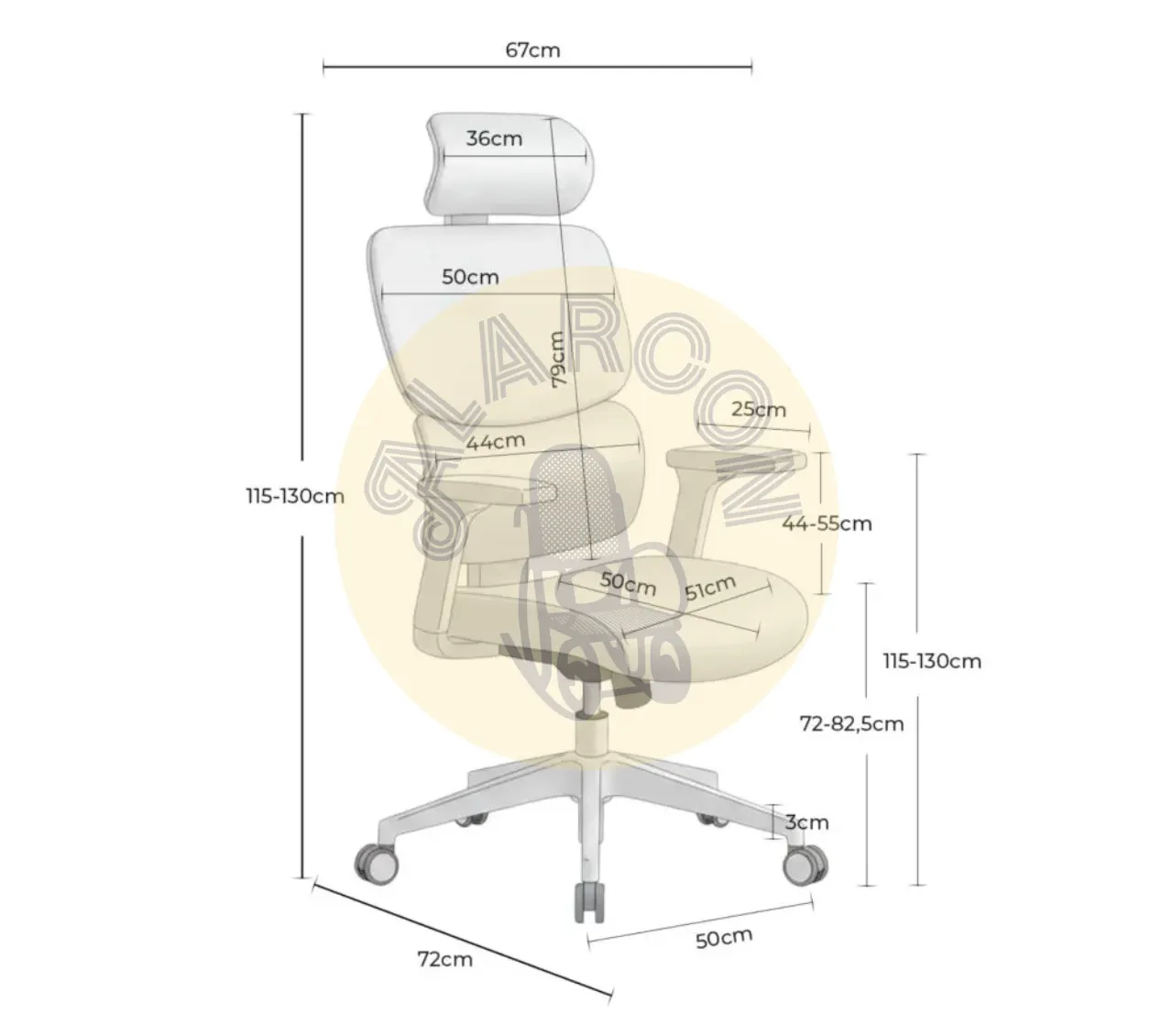 Cumple con la certificación BIFMA EN1335, garantizando resistencia y durabilidad hasta 150 kg. Con unas dimensiones de 67 cm de ancho, 72 cm de fondo y hasta 130 cm de alto, esta silla ofrece ergonomía profesional en cualquier espacio de trabajo.