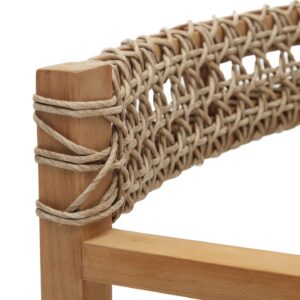 El asiento de mimbre sintético complementa el diseño, proporcionando un contraste elegante y funcional. Con su color beige y natural, se adapta fácilmente a diferentes estilos de decoración, tanto en interiores como en terrazas.