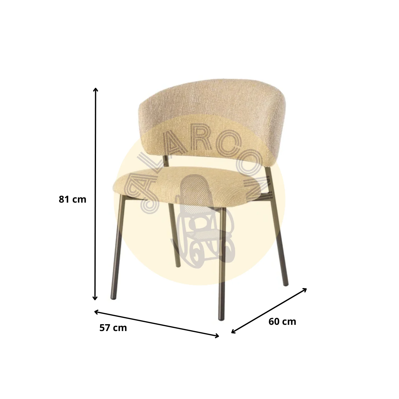 Con un diseño moderno y líneas suaves, la silla jaspeada mostaza modelo Febrero 2025 aporta un toque de estilo contemporáneo a cualquier estancia. Su estructura de metal resistente combina con el tejido 100% poliéster, creando una pieza duradera y de aspecto elegante.