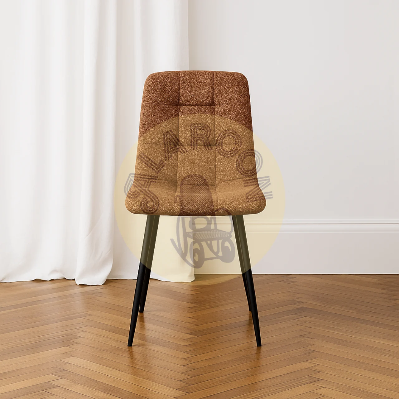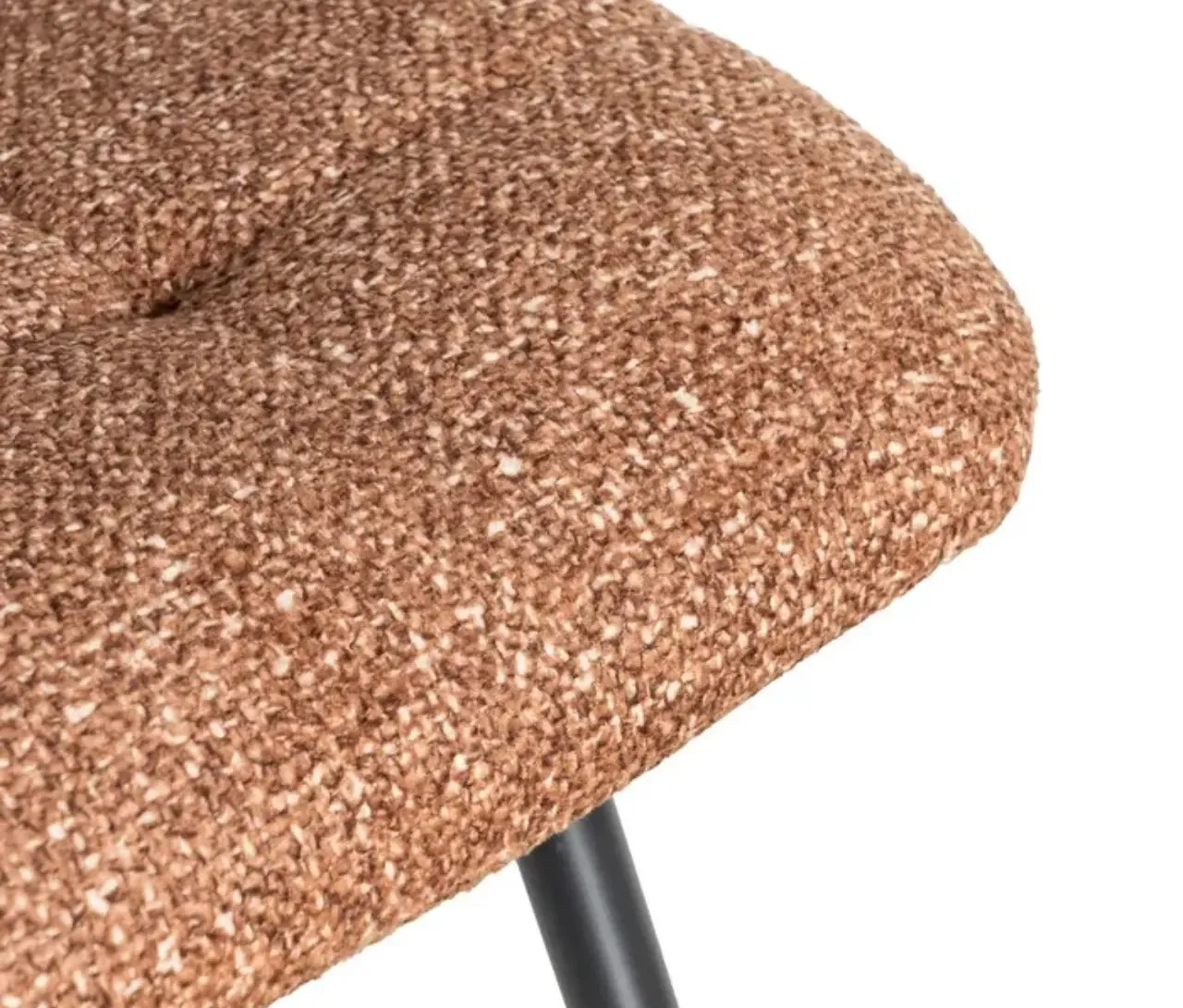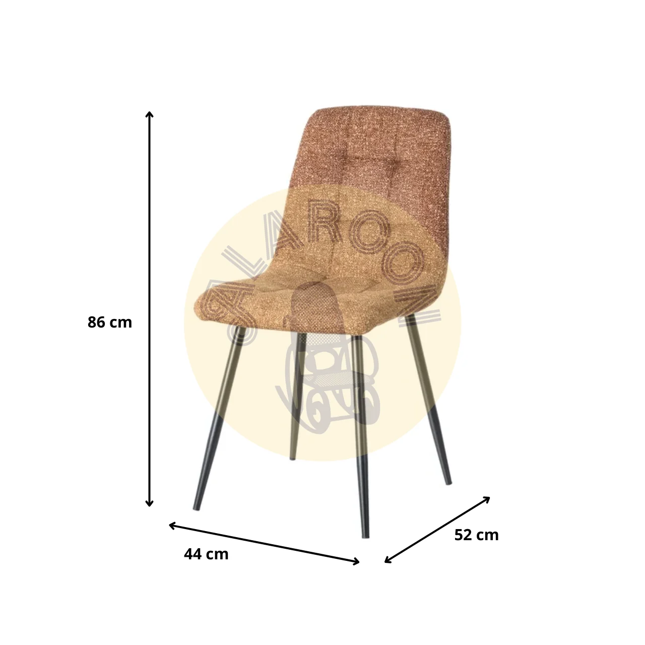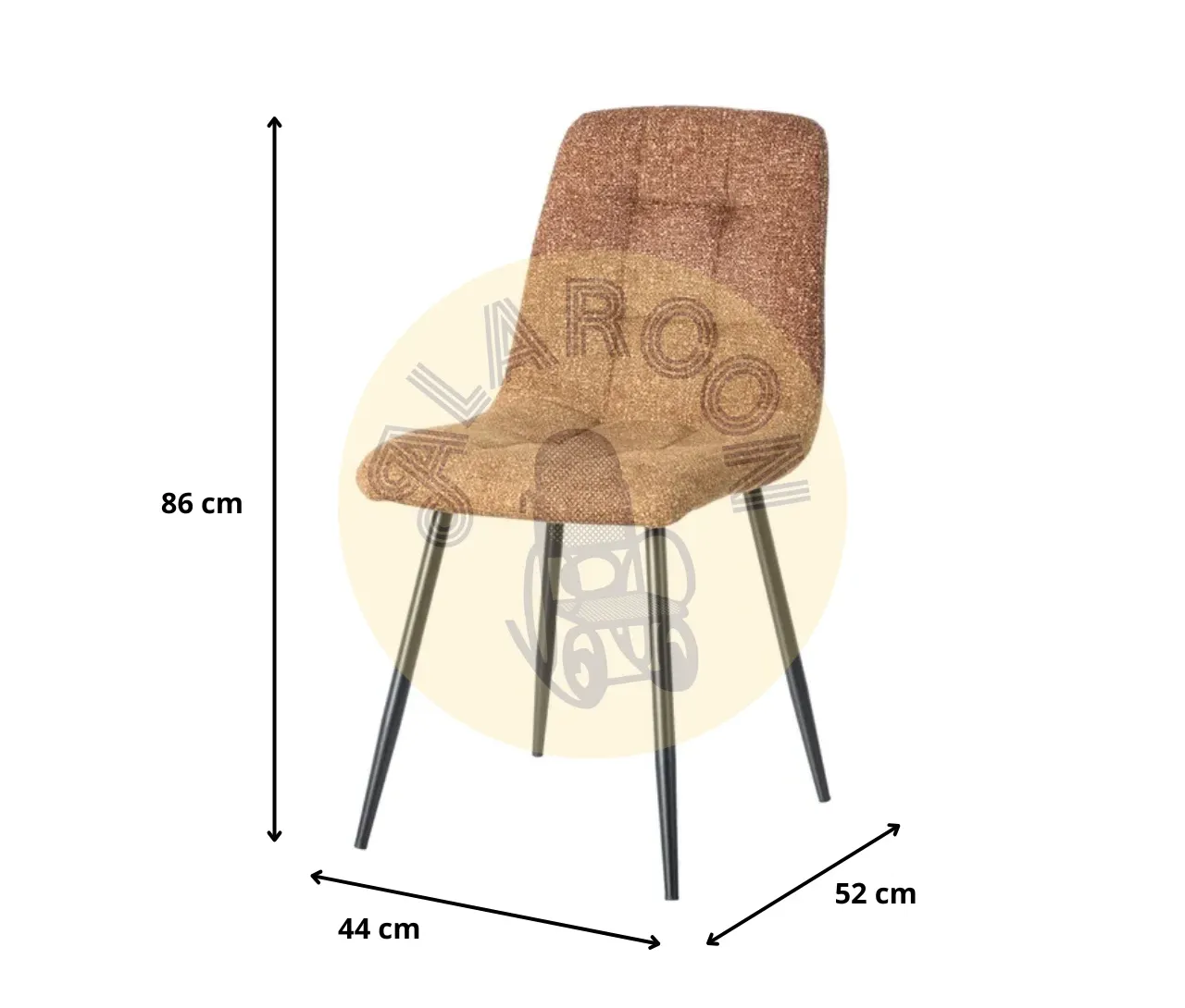 Con un diseño moderno y líneas suaves, la silla jaspeada ocre combina tejido 100% poliéster y estructura metálica para aportar estilo y resistencia a cualquier espacio. Su tono ocre añade un toque cálido y sofisticado, ideal para comedores o rincones contemporáneos.
