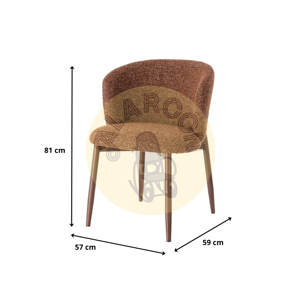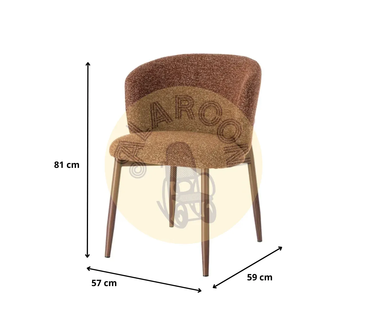 El modelo jaspeado color teja combina un estilo moderno con un acabado cálido que realza cualquier comedor o salón. Su estructura de metal (acero) aporta firmeza y durabilidad, mientras que el tejido 100% poliéster ofrece una textura suave y resistente al uso diario.