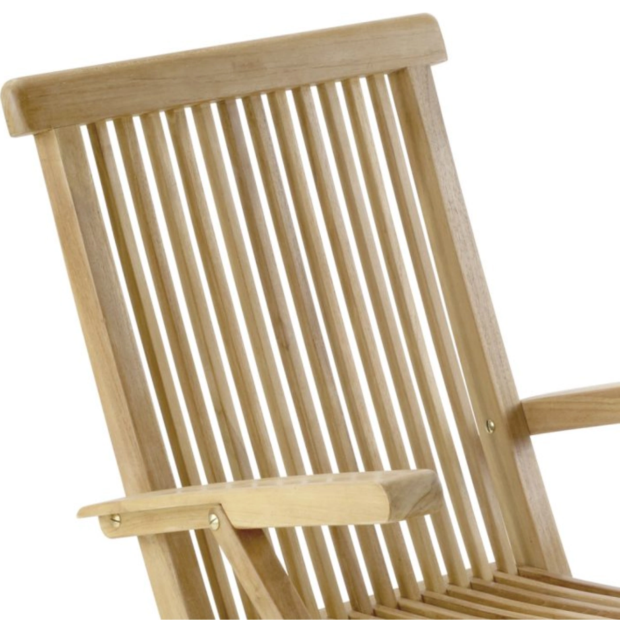 Aporta funcionalidad y estilo a tu espacio exterior con esta silla plegable de jardín fabricada en madera de teca maciza, un material duradero y adecuado para uso en exterior. Su diseño con reposabrazos y estructura sólida ofrece una opción práctica para terrazas, patios o jardines.
