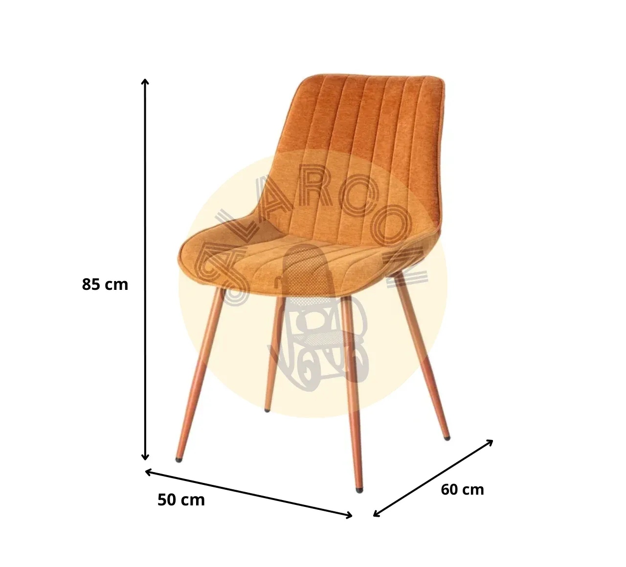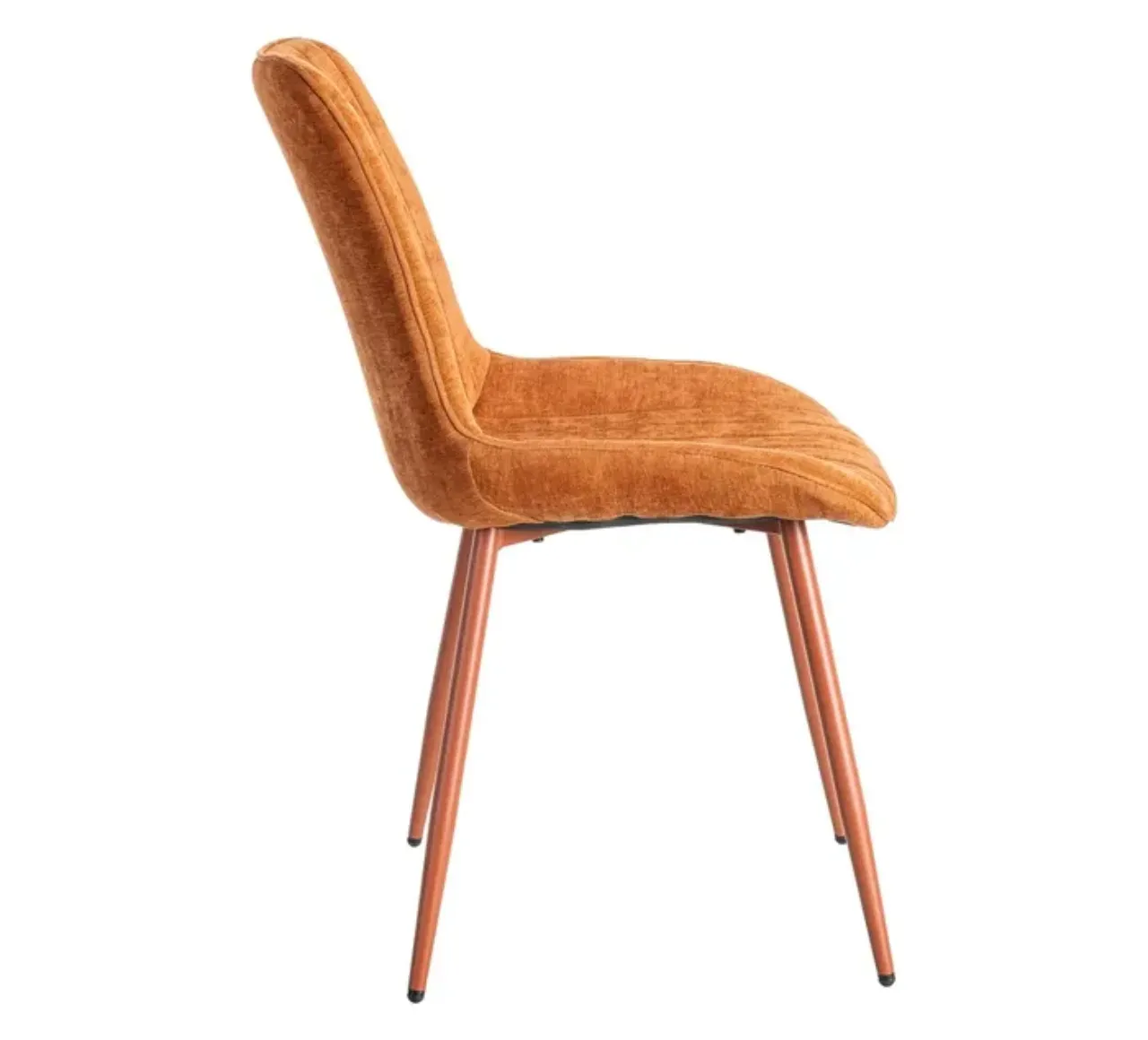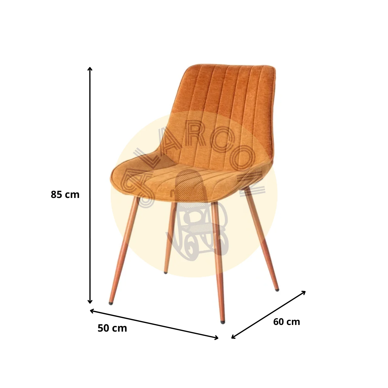 Silla tapizada color teja con patas metálicas – Estilo moderno, tejido poliéster, 50x60x85 cm – IXIA