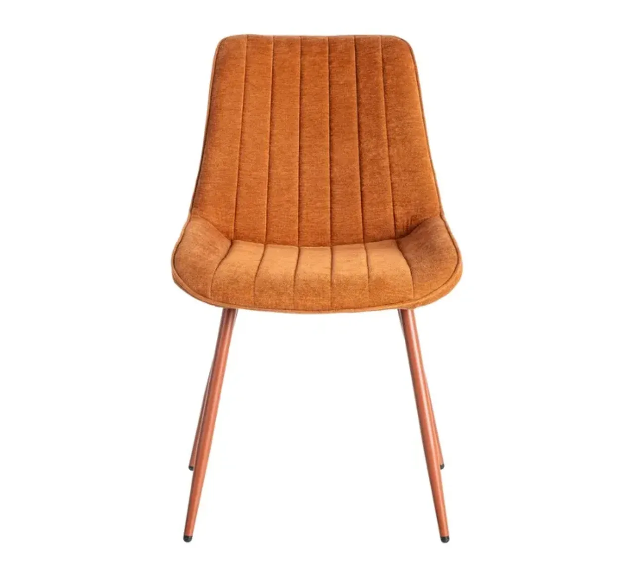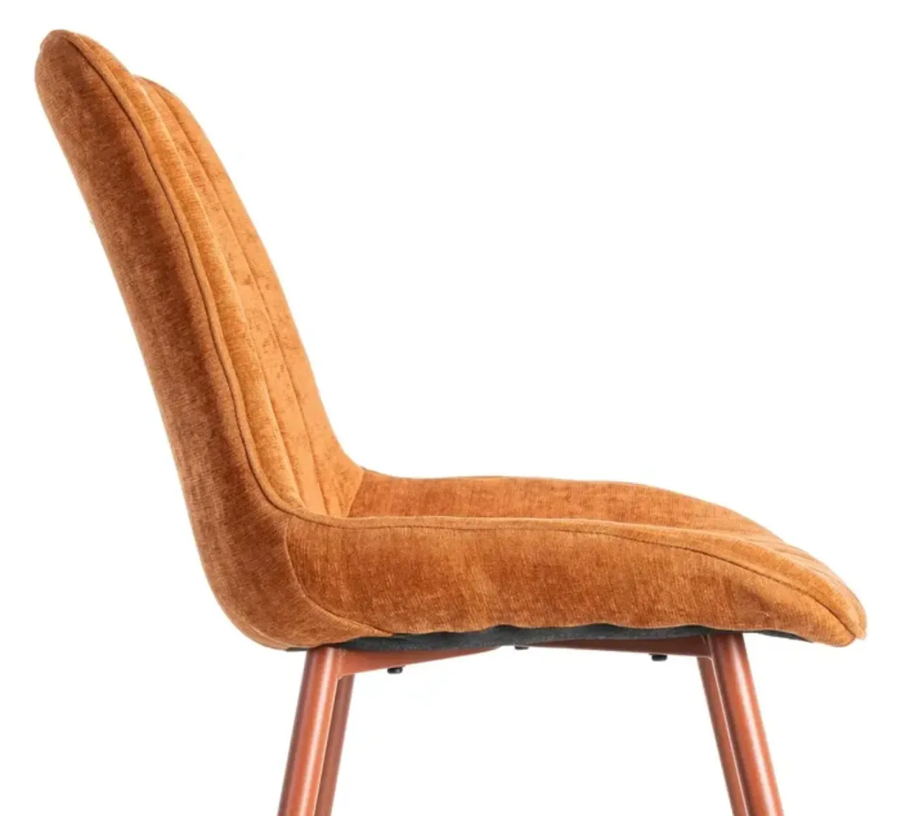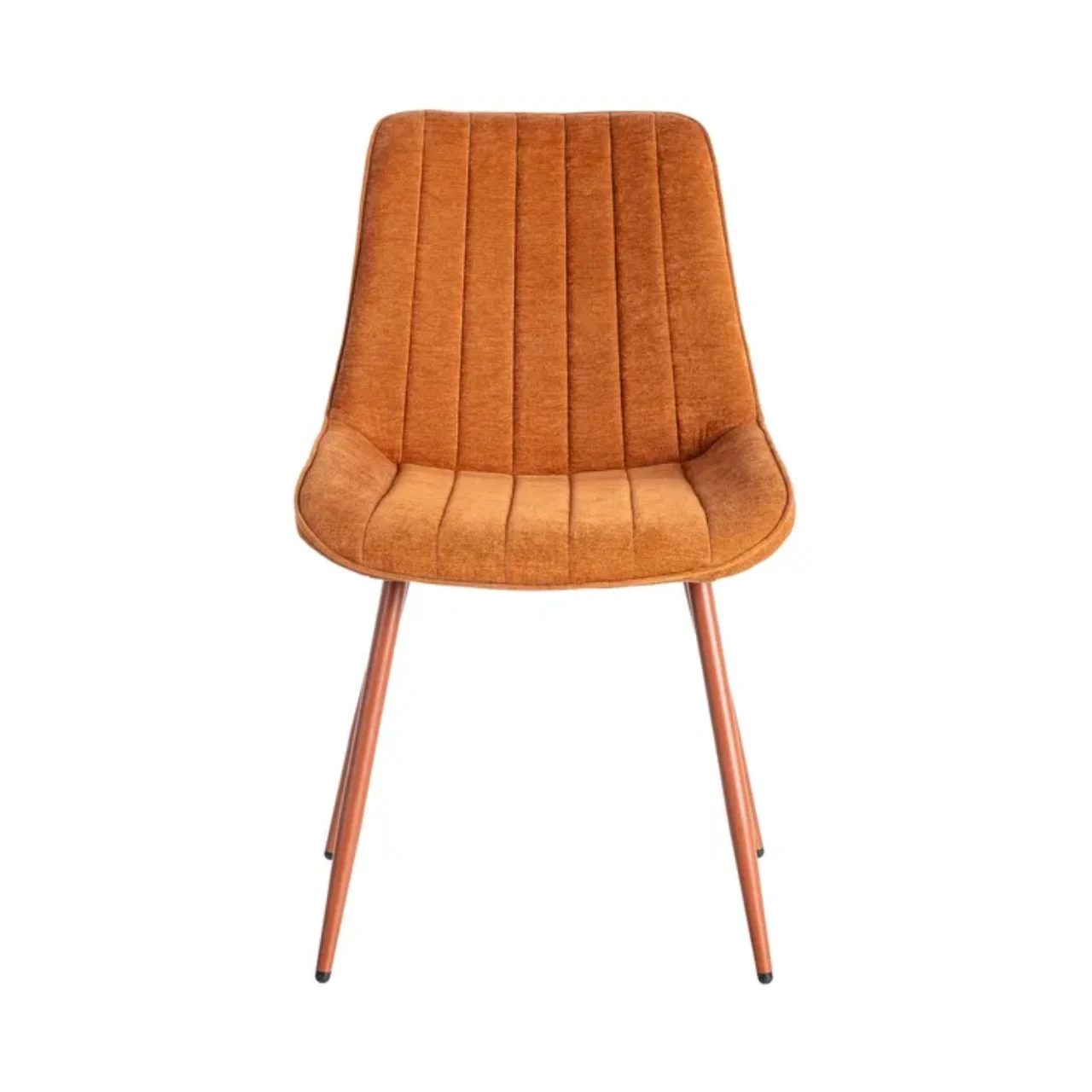 Silla tapizada color teja con patas metálicas – Estilo moderno, tejido poliéster, 50x60x85 cm – IXIA