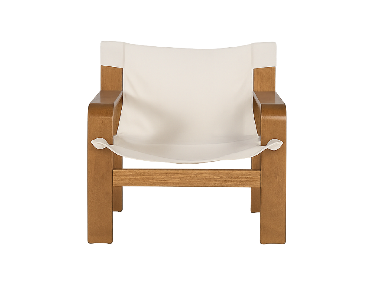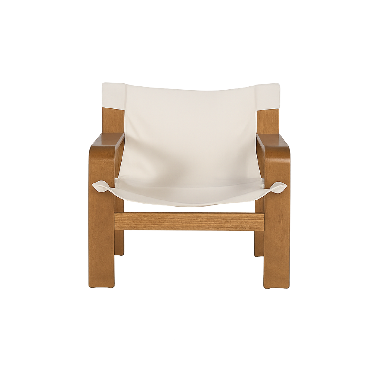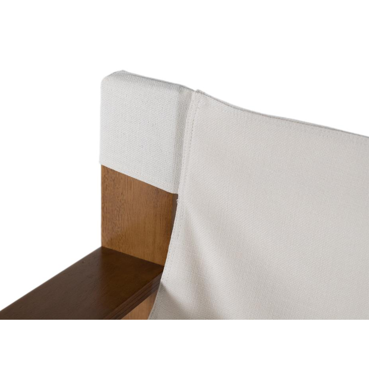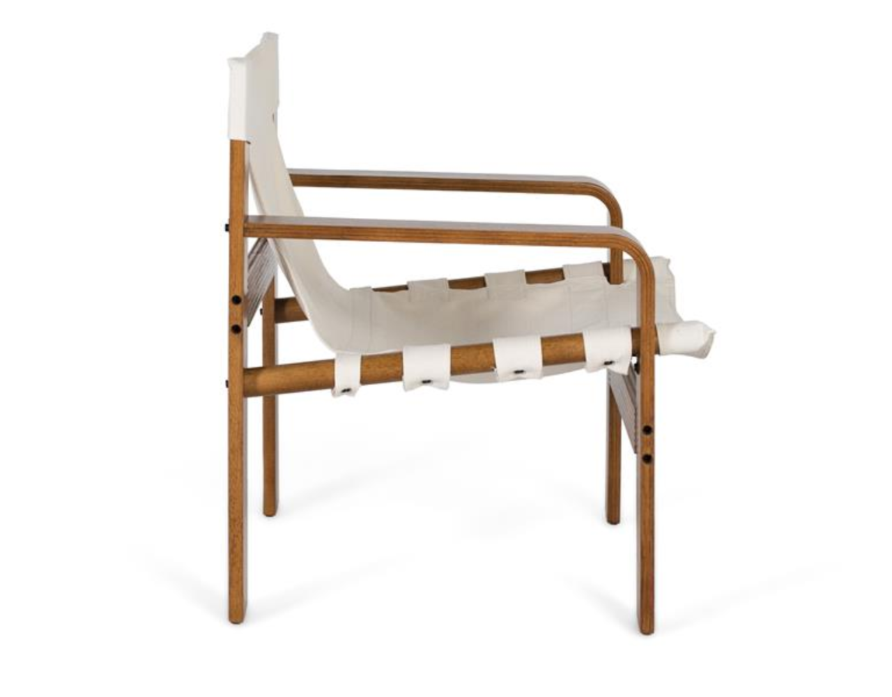 El asiento y respaldo en lona beige crean una superficie flexible que se ajusta al cuerpo al sentarse, ofreciendo una comodidad envolvente sin necesidad de acolchado. Su textura suave aporta un aspecto relajado y natural, ideal para un ambiente acogedor.