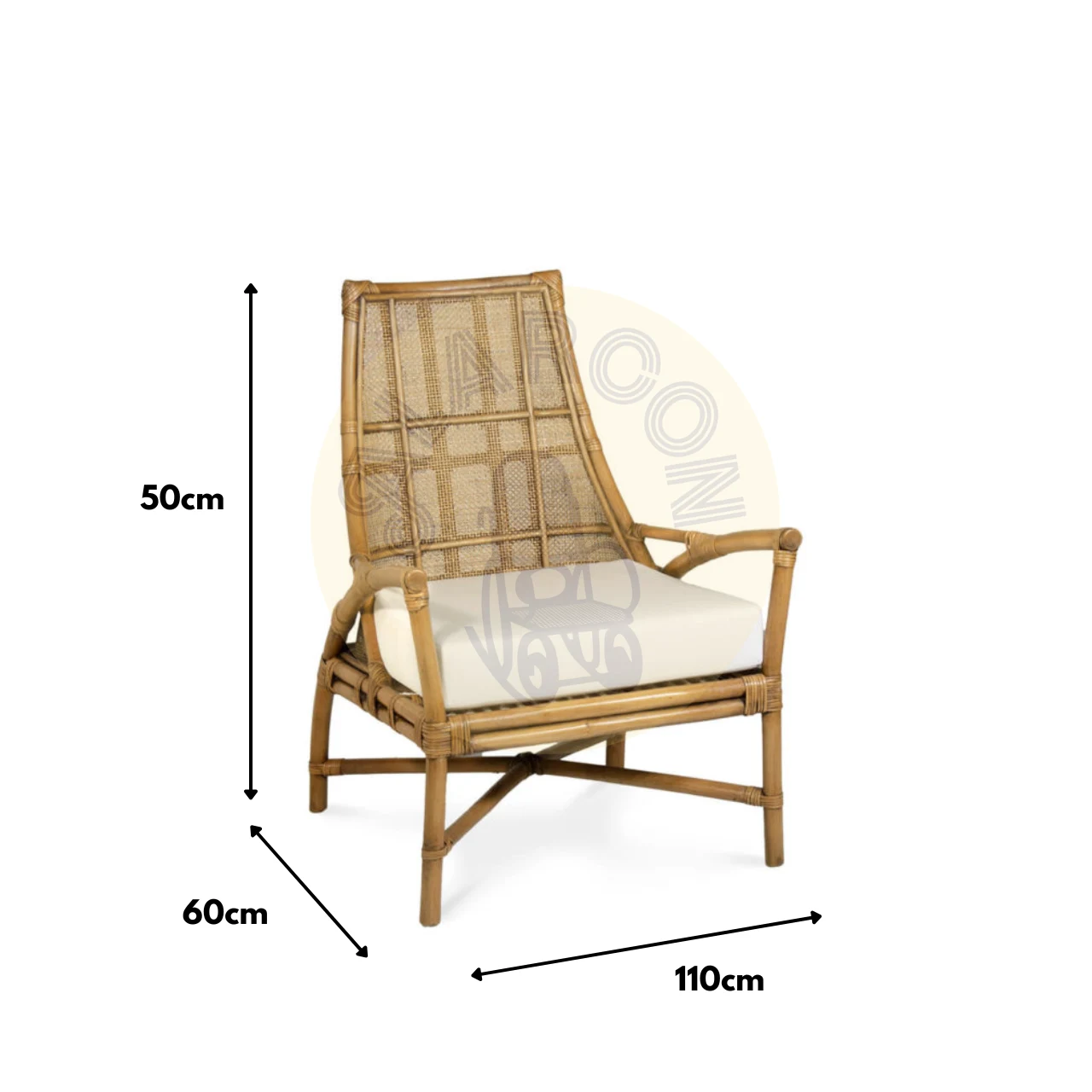 Con unas medidas de 67 x 65 x 95 cm, ofrece una altura de asiento de 35 cm y 47 cm con cojín, además de reposabrazos a 59 cm para mayor confort.