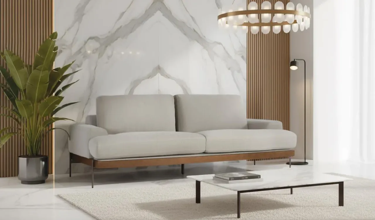 Su ergonomía se apoya en asientos amplios y cojines mullidos que invitan a largas sesiones de descanso, manteniendo una estética refinada y fácil de combinar.