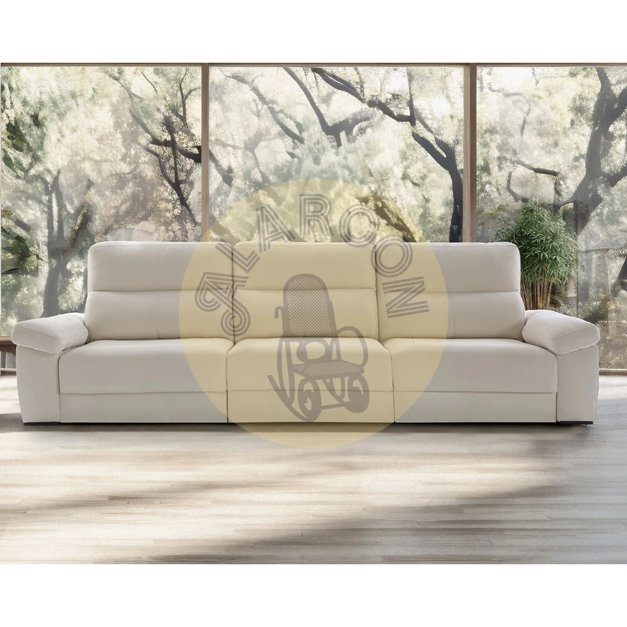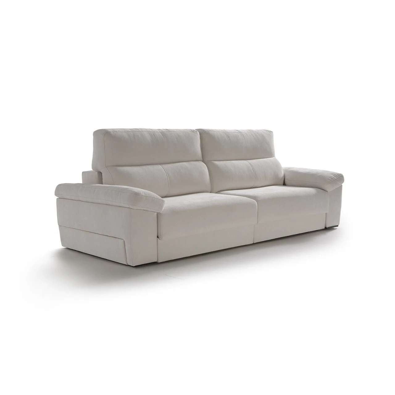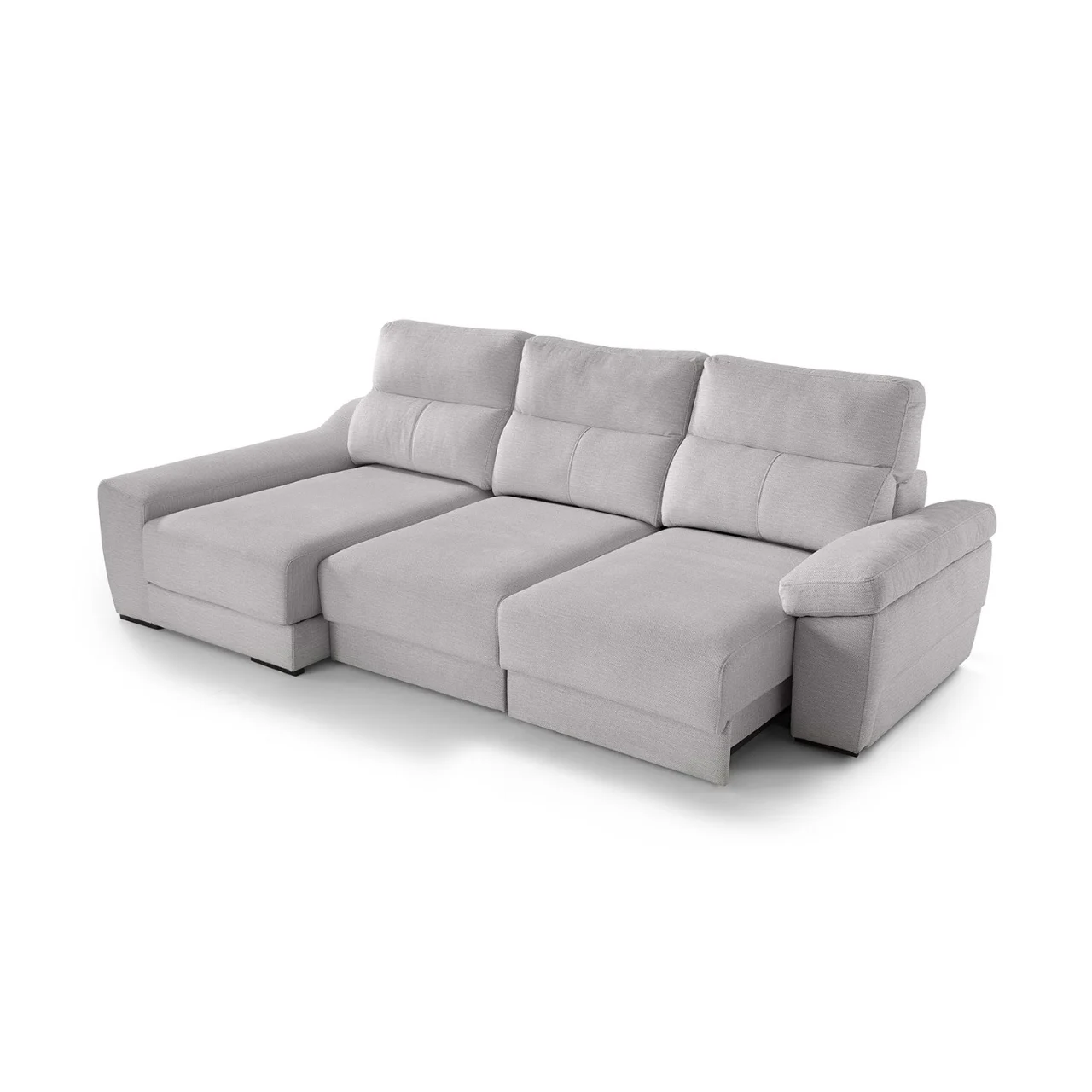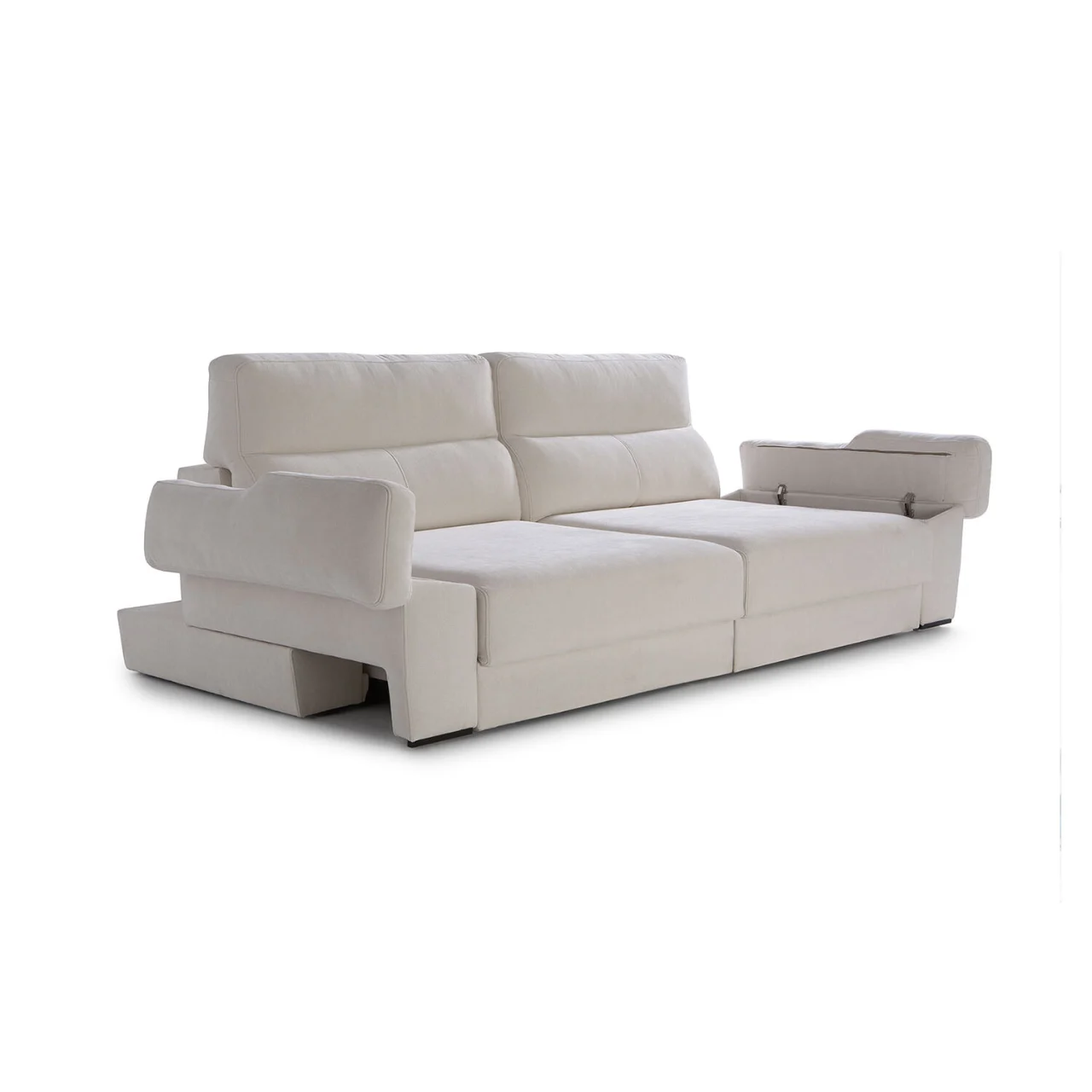 Disfruta de un uso versátil gracias a su mecanismo deslizante punto a punto, su arcón integrado y el módulo de chaise longue con salida de +32 cm, perfecto para adaptar el espacio según tus necesidades. Los respaldos reclinables de fibra hueca siliconada y los brazos con almacenamiento amplían su funcionalidad sin renunciar a una estética moderna y elegante.