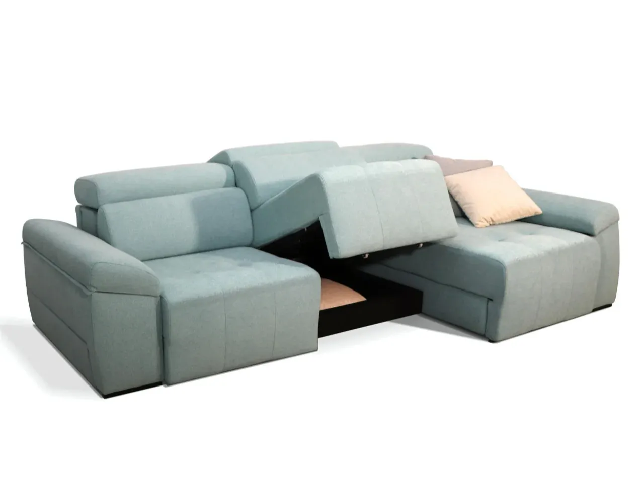 Renueva tu salón con el sofá Heureka, un modelo que combina diseño contemporáneo y confort premium. Su estructura de madera de pino, los asientos de espuma de poliuretano 35 kg y los respaldos de 25 kg ofrecen una comodidad duradera, mientras que su sistema deslizante y reclinable permite adaptar cada posición a tu descanso diario.