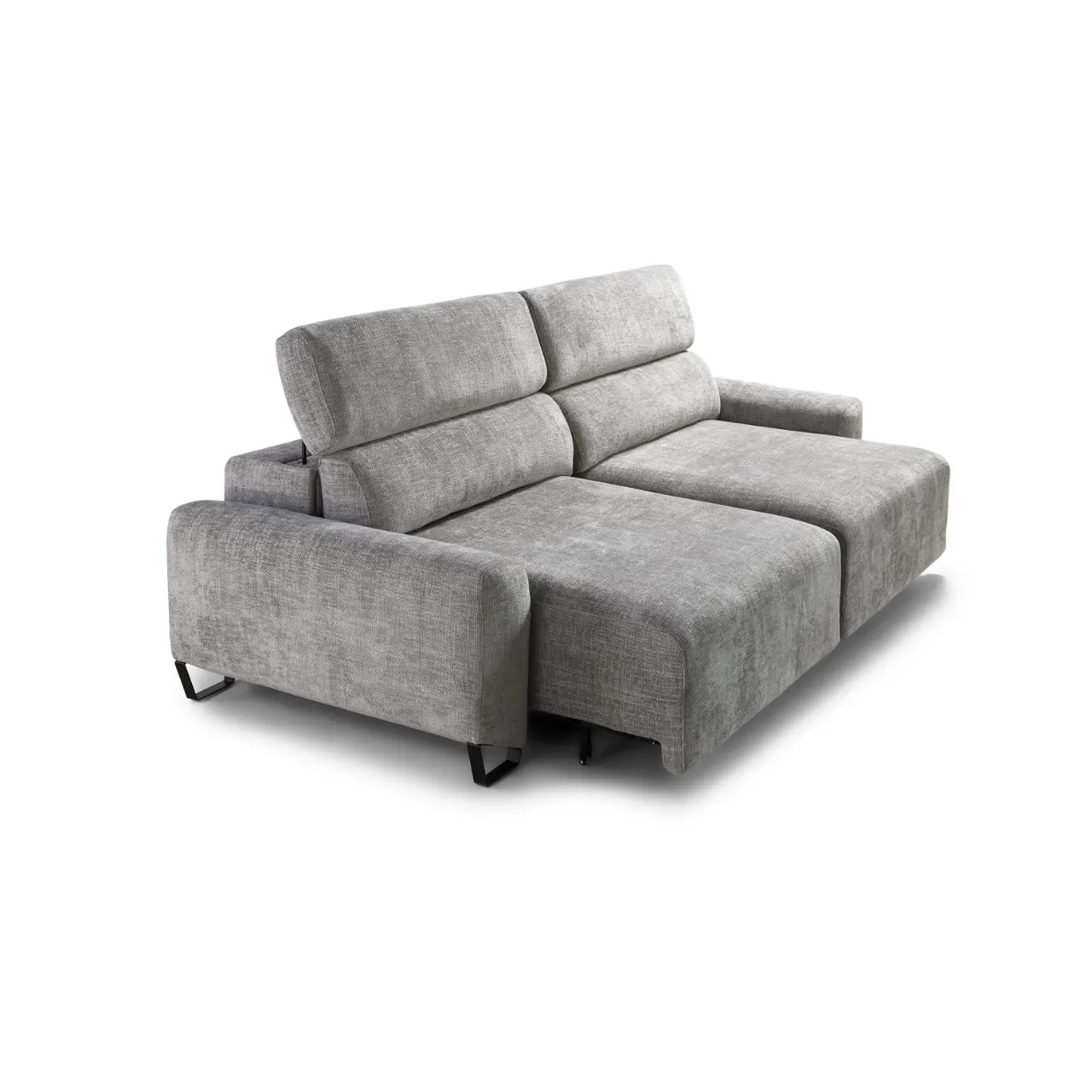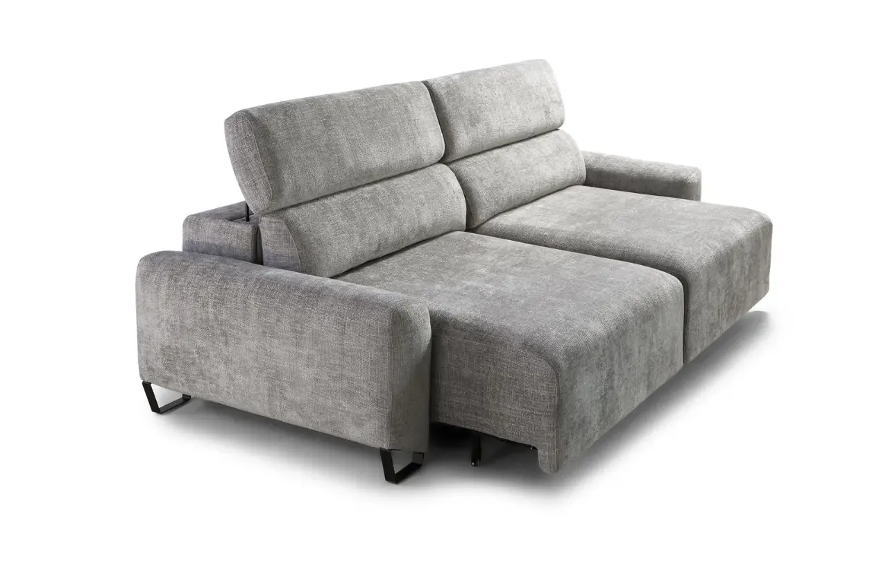 La estructura de madera de pino, los asientos con núcleo de 35 kg y el mecanismo deslizante de gran recorrido ofrecen una experiencia cómoda y resistente. Los respaldos multiposición, con espuma 25 kg extra suave, se acompañan de brazos acolchados que aumentan la sensación de descanso.