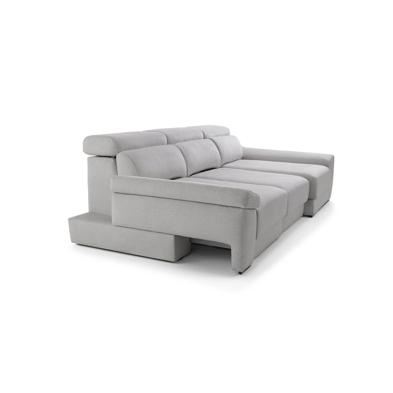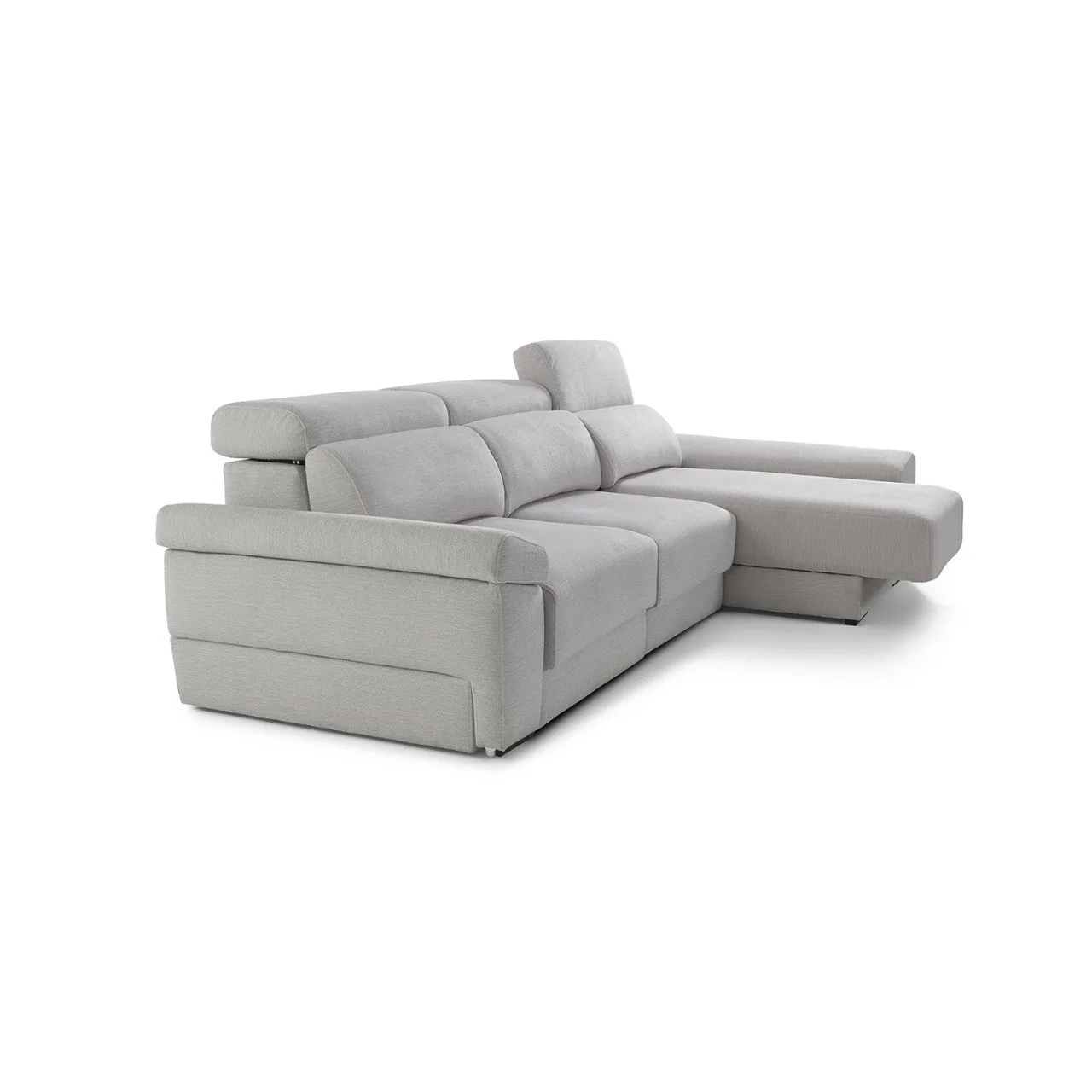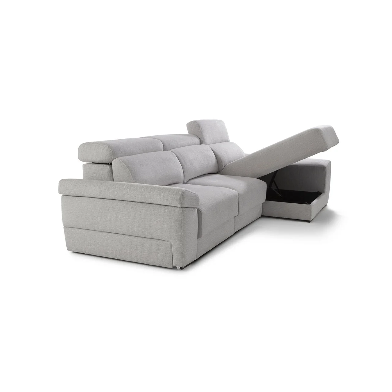 El respaldo reclinable con mecanismo italiano y la opción de asientos desenfundables aportan un uso práctico y duradero. Sus brazos incluyen un módulo deslizante con arcón de 27 cm, mientras que la chaise longue ofrece un diseño amplio con un brazo de 30 cm, perfecto para ampliar el espacio de descanso con mayor comodidad.