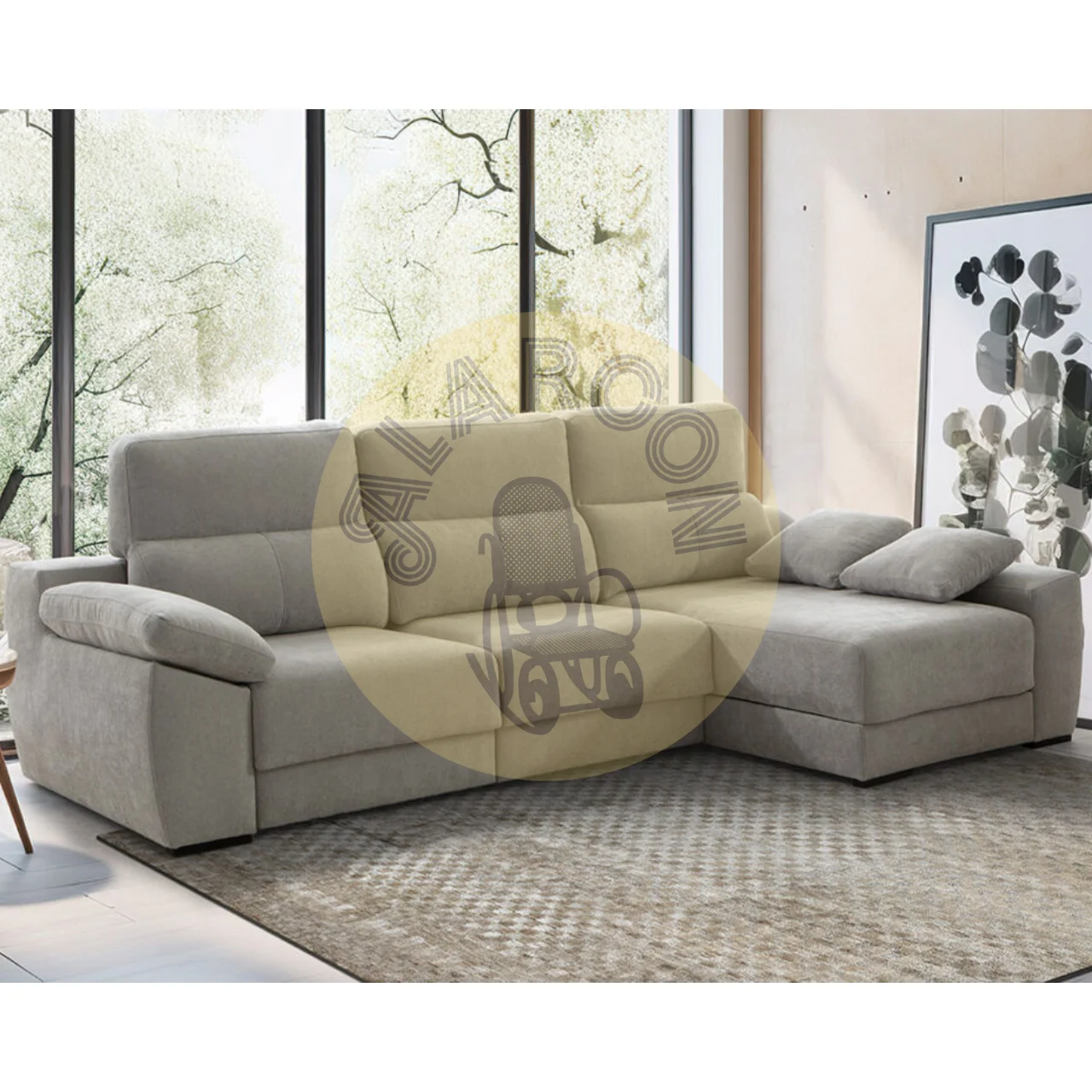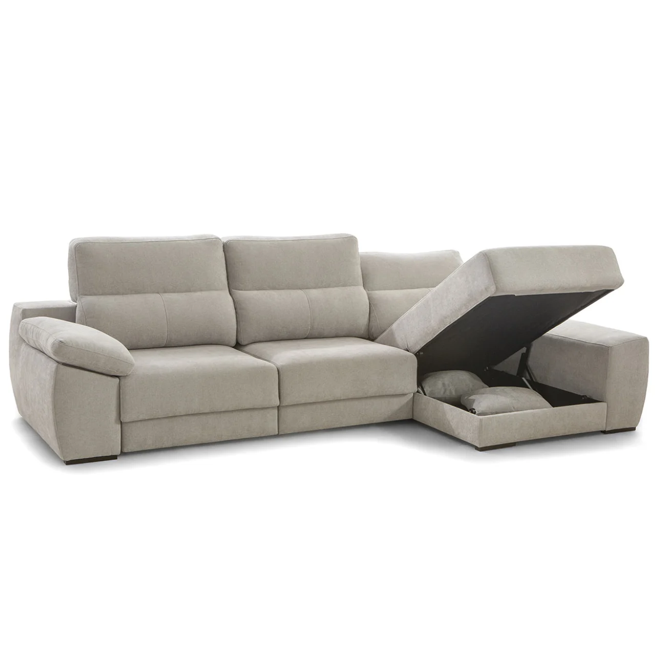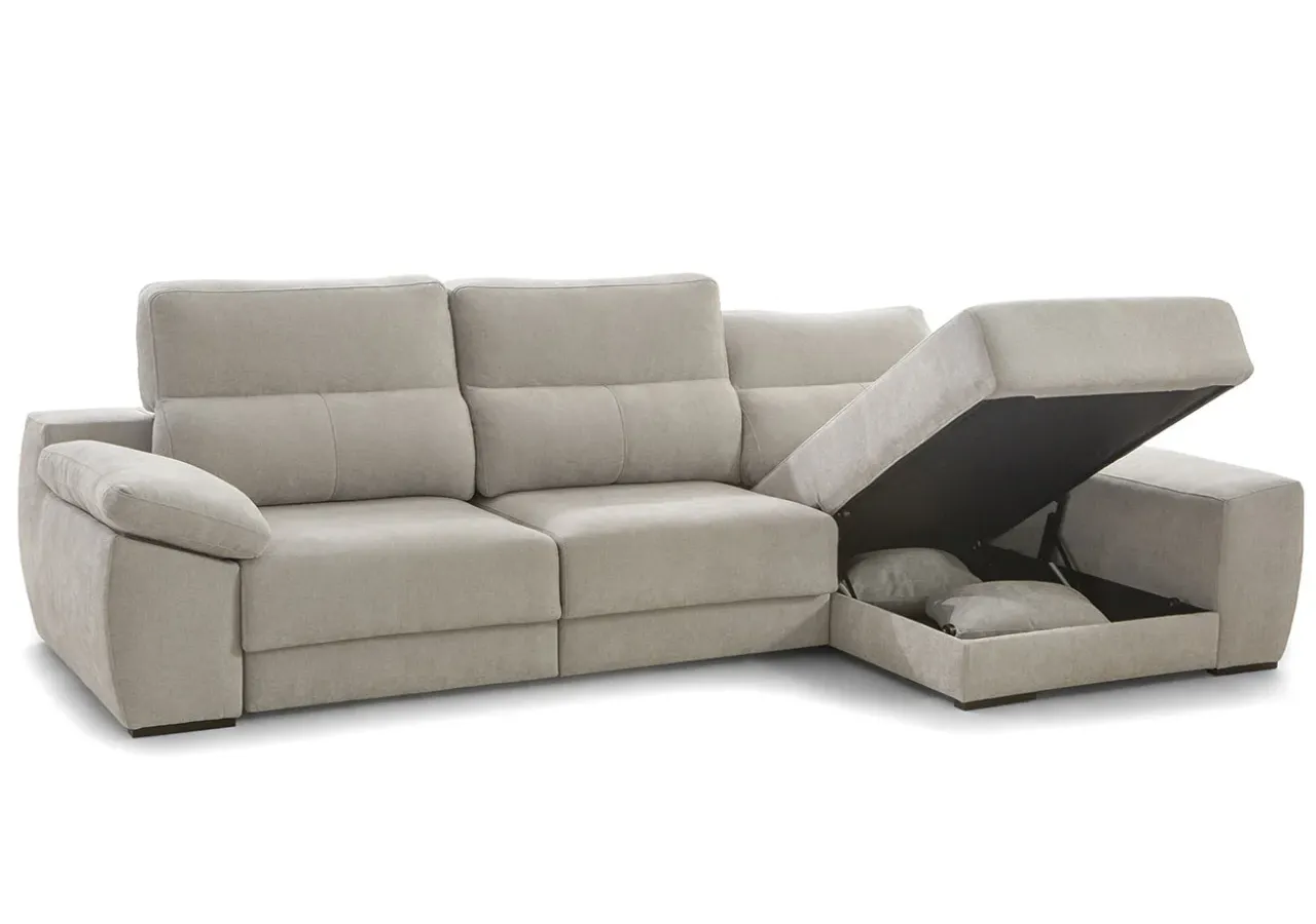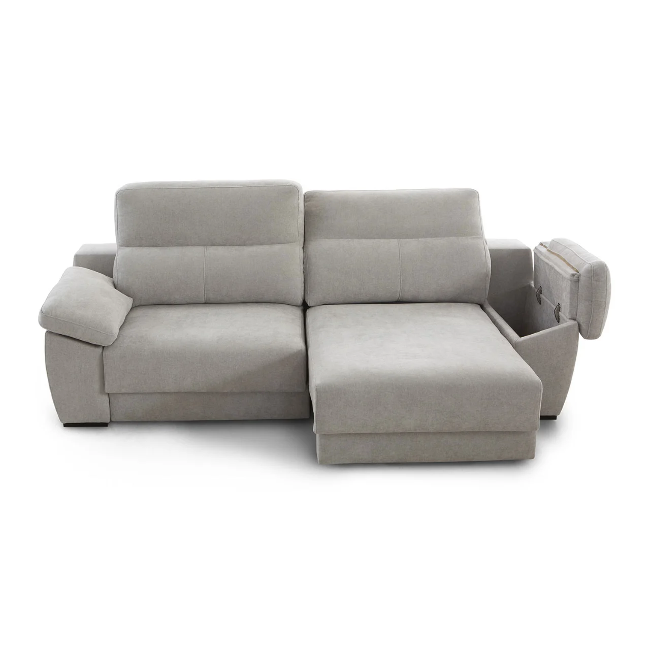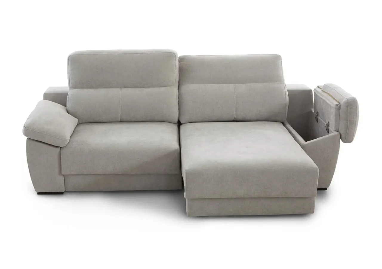 Aprovecha la funcionalidad del brazo con arcón integrado, ideal para mantener tus esenciales organizados. El sistema deslizante de la chaiselongue, con salida de +32 cm, y su respaldo reclinable punto a punto permiten ajustar cada detalle para un apoyo óptimo gracias a su fibra de poliéster siliconada.
