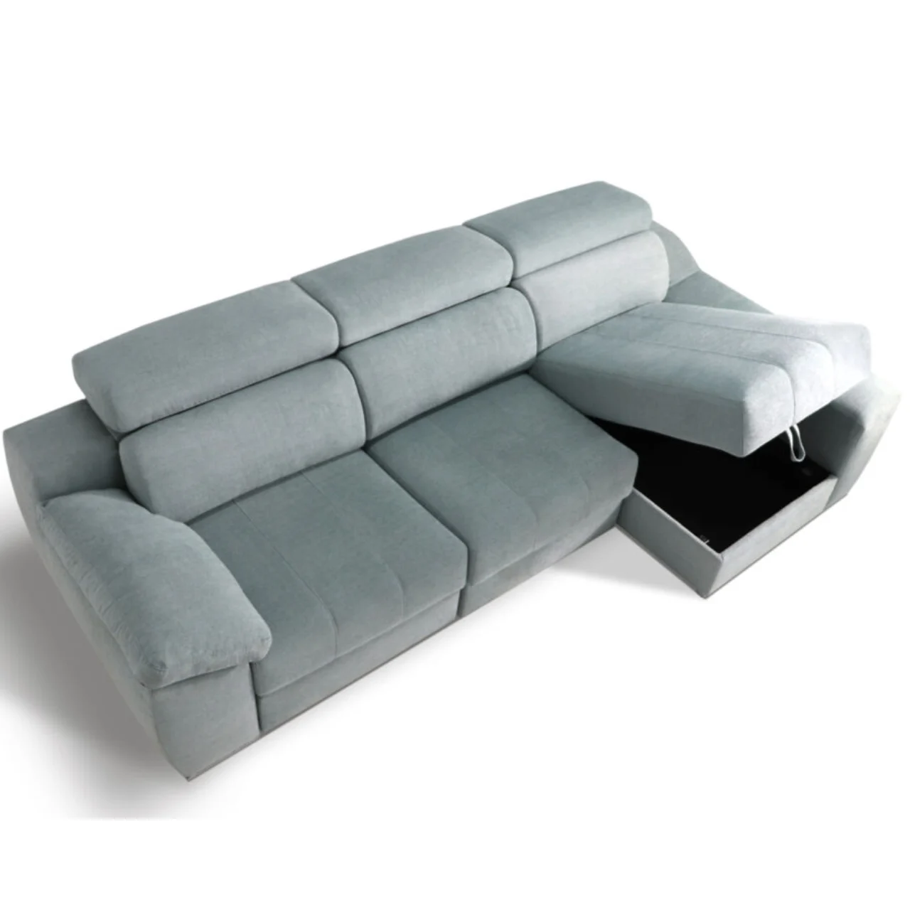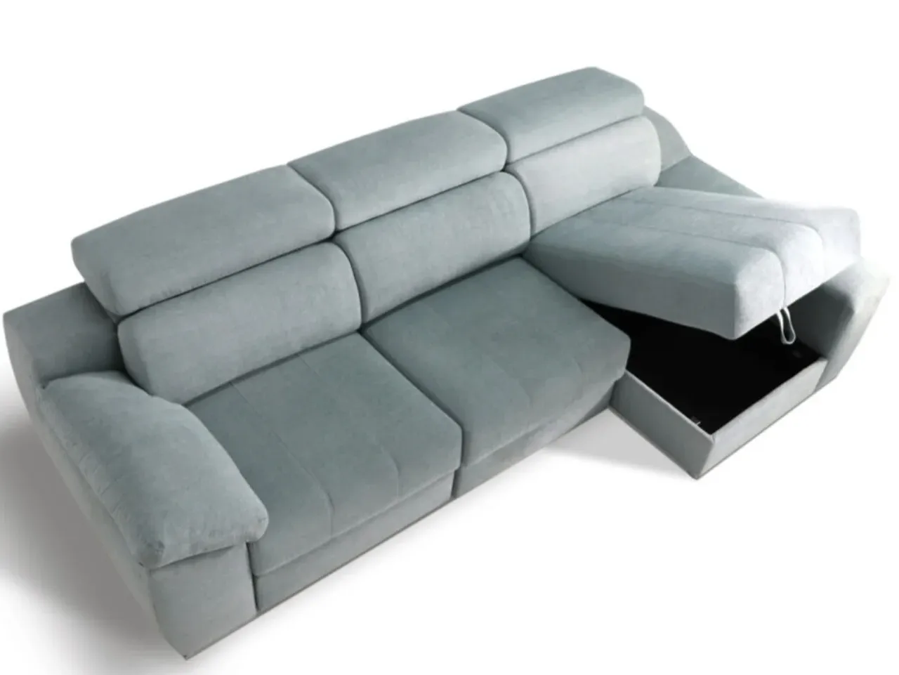 Su chaise longue con arcón aporta un espacio extra muy práctico, mientras que los brazos con almohada y el asiento deslizante permiten un ajuste personalizado sin esfuerzo. Los respaldos y asientos desenfundables facilitan el mantenimiento diario, manteniendo el sofá siempre en perfectas condiciones.