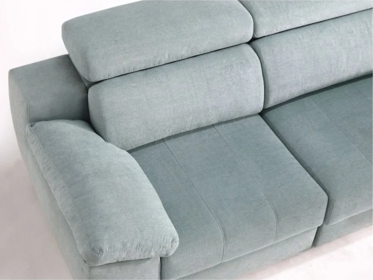 Explora el sofá Kiev, un modelo diseñado para ofrecer confort mediante su respaldo reclinable con mecanismo italiano en cromo y asientos con espuma de poliuretano de 35 kg, acompañados de una capa super suave que mejora cada momento de descanso. Su tapizado suave y sus líneas modernas lo convierten en una opción ideal para realzar cualquier salón.