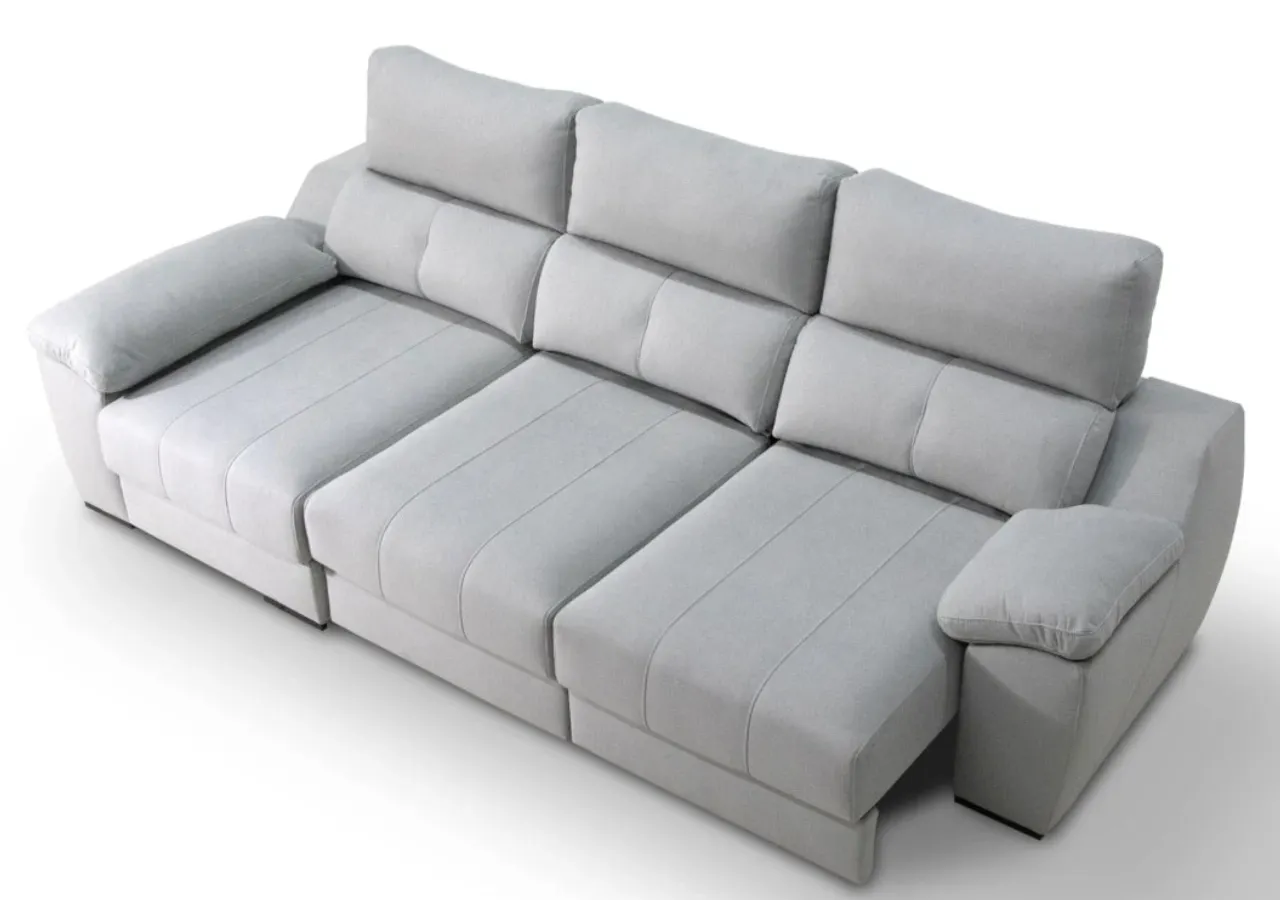 Experimenta el confort del sofá Valkiria, un modelo diseñado para ofrecer una experiencia relajada gracias a su respaldo reclinable punto a punto y a sus asientos deslizantes con doble capa súper suave. Su estructura de madera de pino aporta estabilidad, mientras que la fibra de poliéster siliconada asegura un apoyo cómodo y adaptable en cada uso.