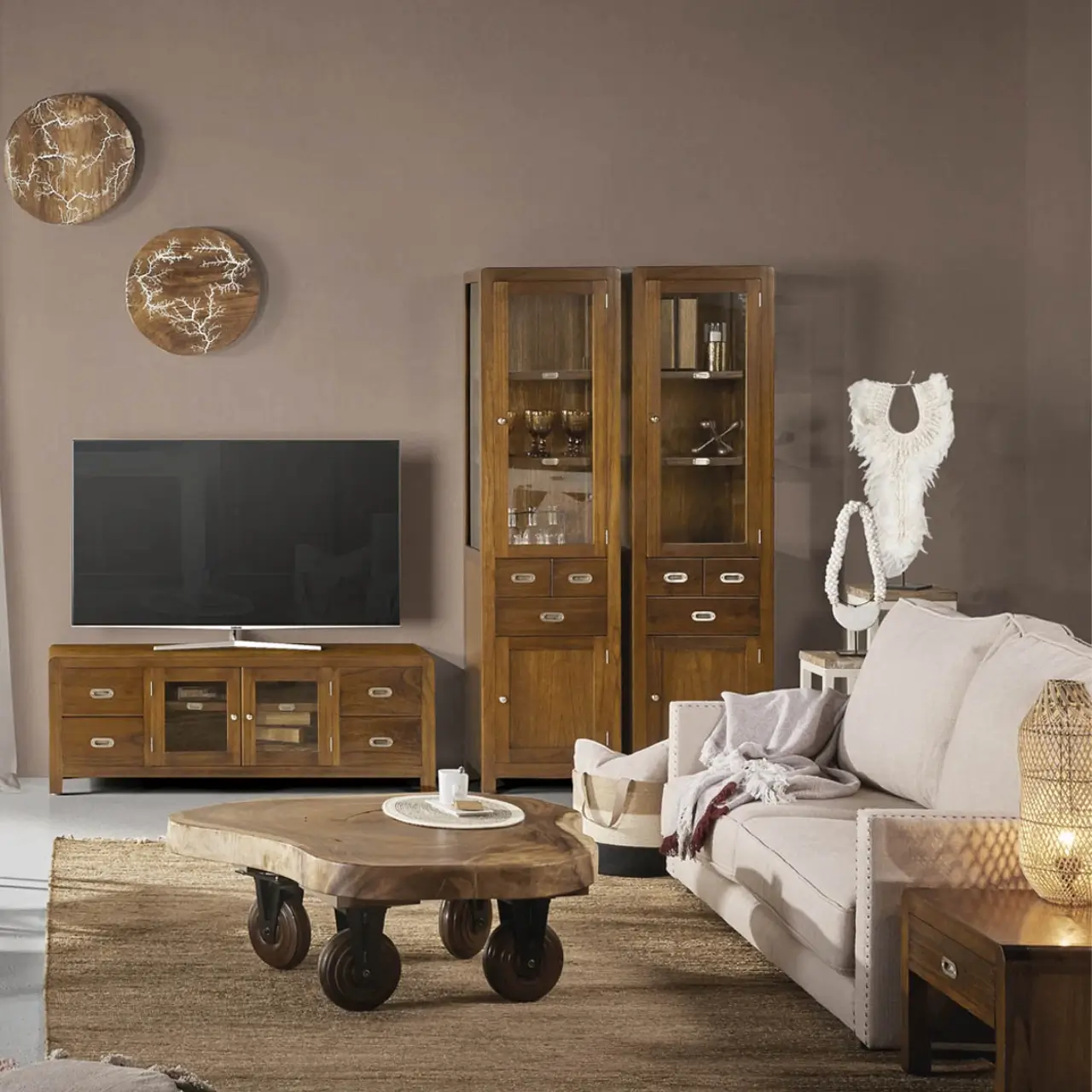 Realza los elementos decorativos: Con sus vitrinas, este mueble no solo almacena sino que también expone y resalta los elementos guardados.